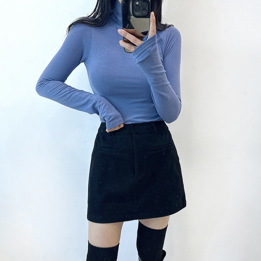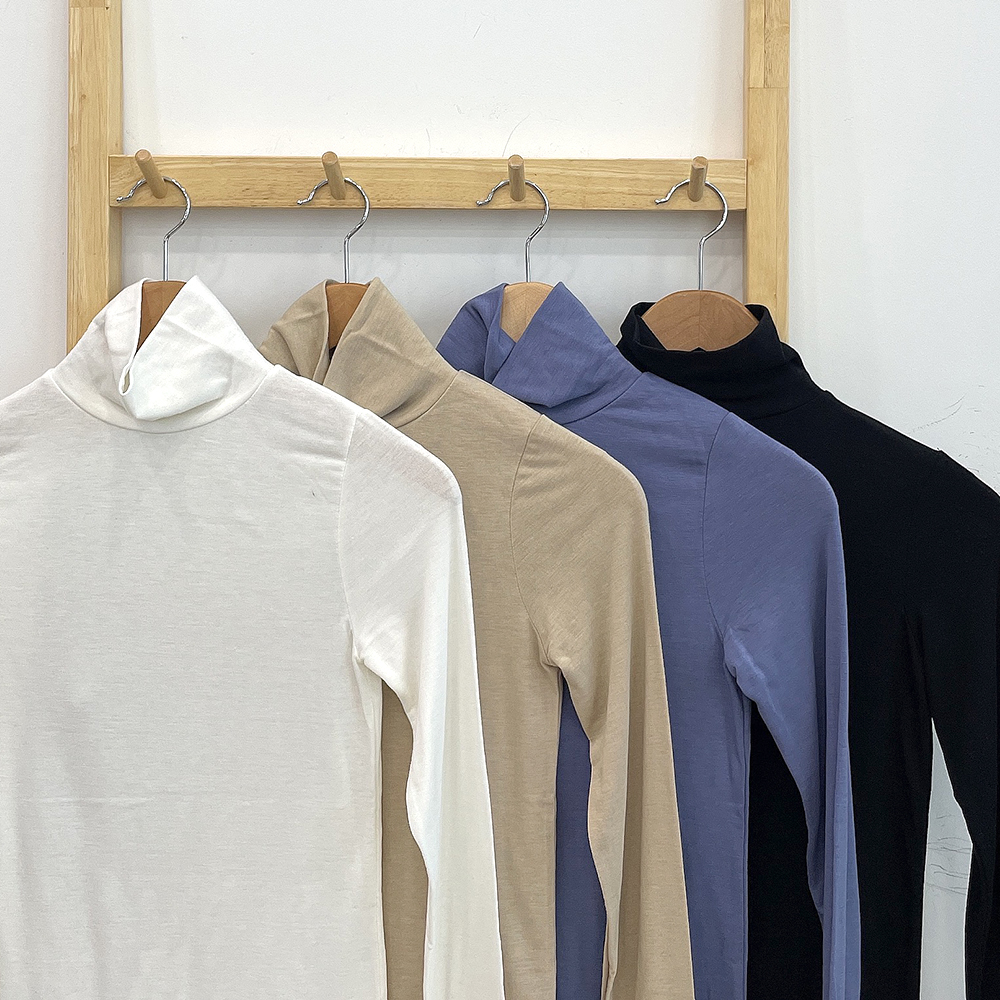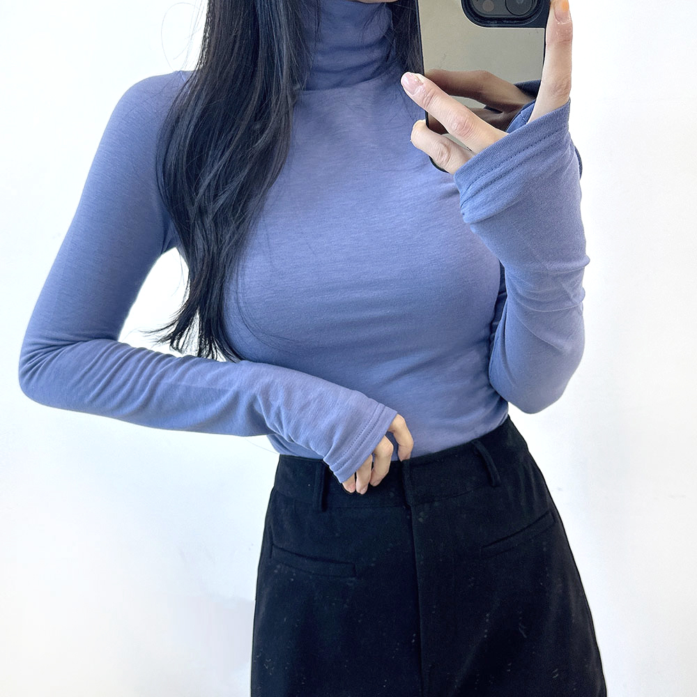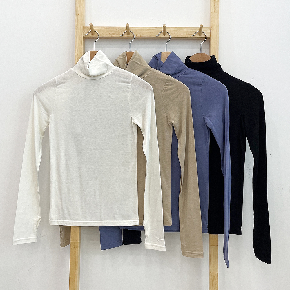 [裏地起毛/4color] ウォーマー付きハイネック長袖Tシャツ