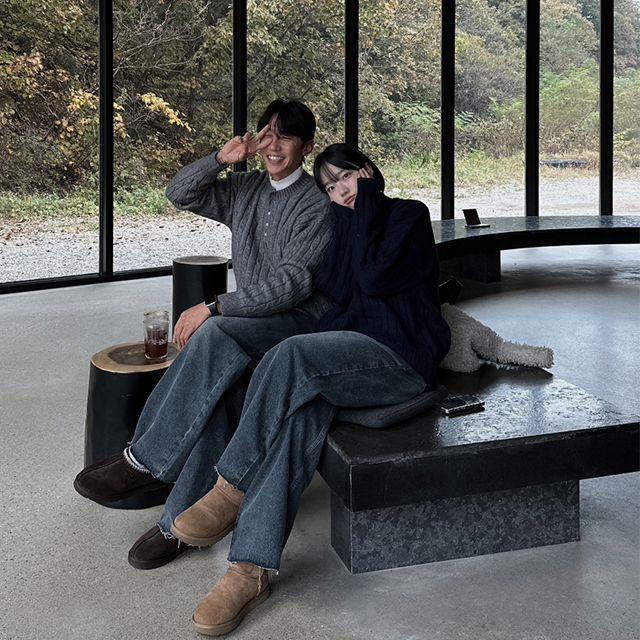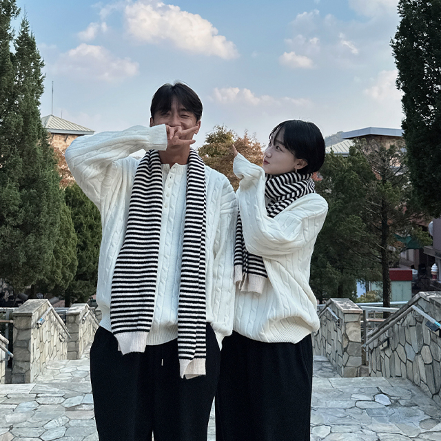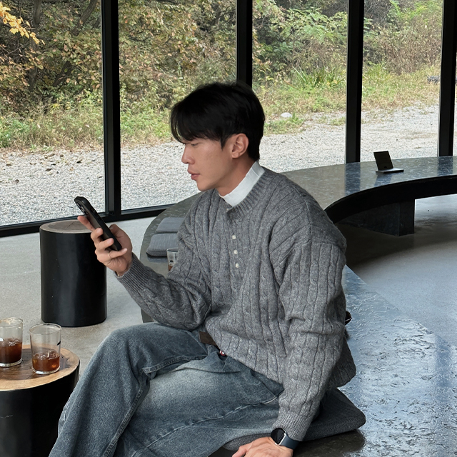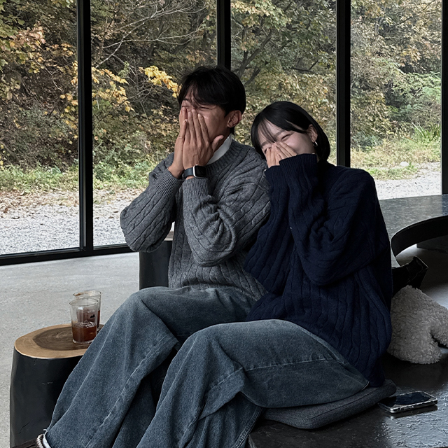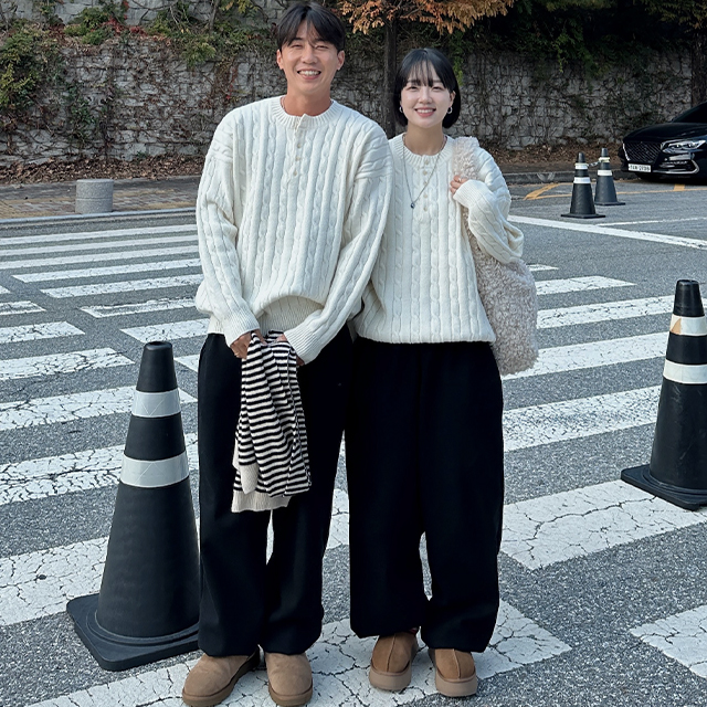 (UNISEX) ケーブルヘンリーネックニット