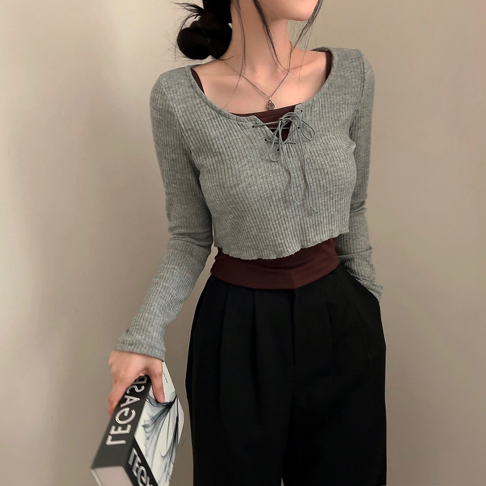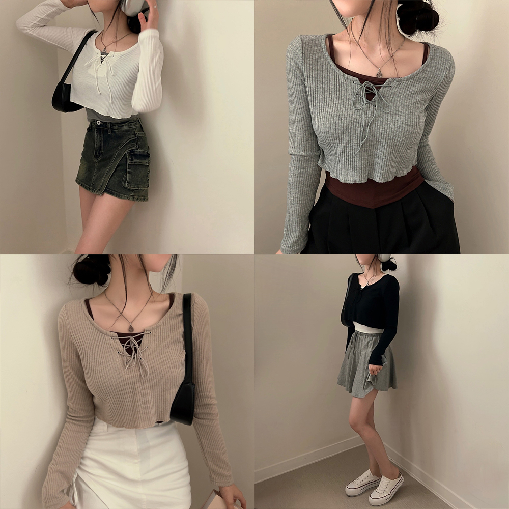[SET] アイレットリボン長袖Tシャツ+ノースリーブセット