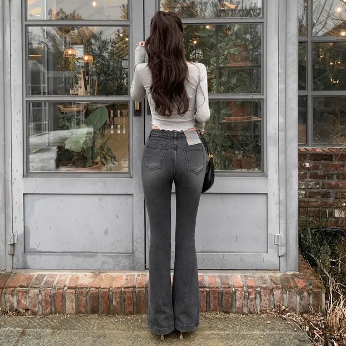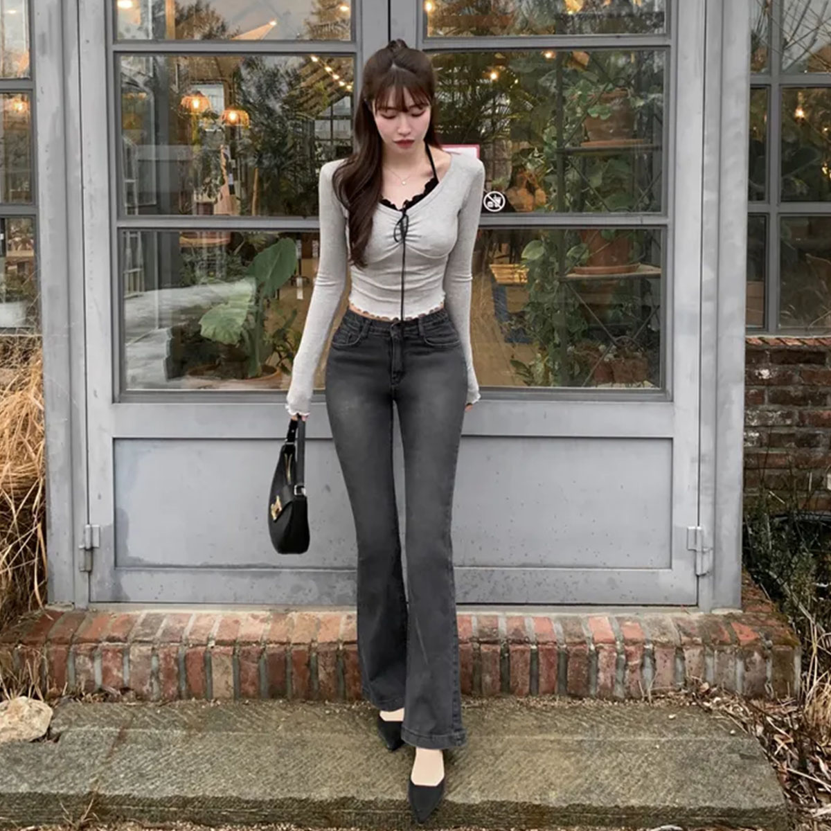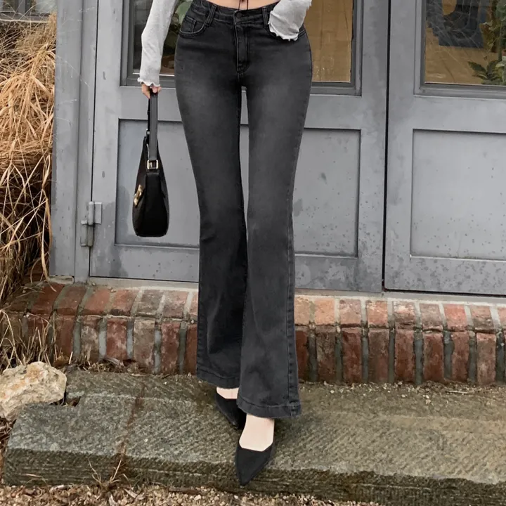 ウォッシュセミブーツカットハイウエストデニムパンツ