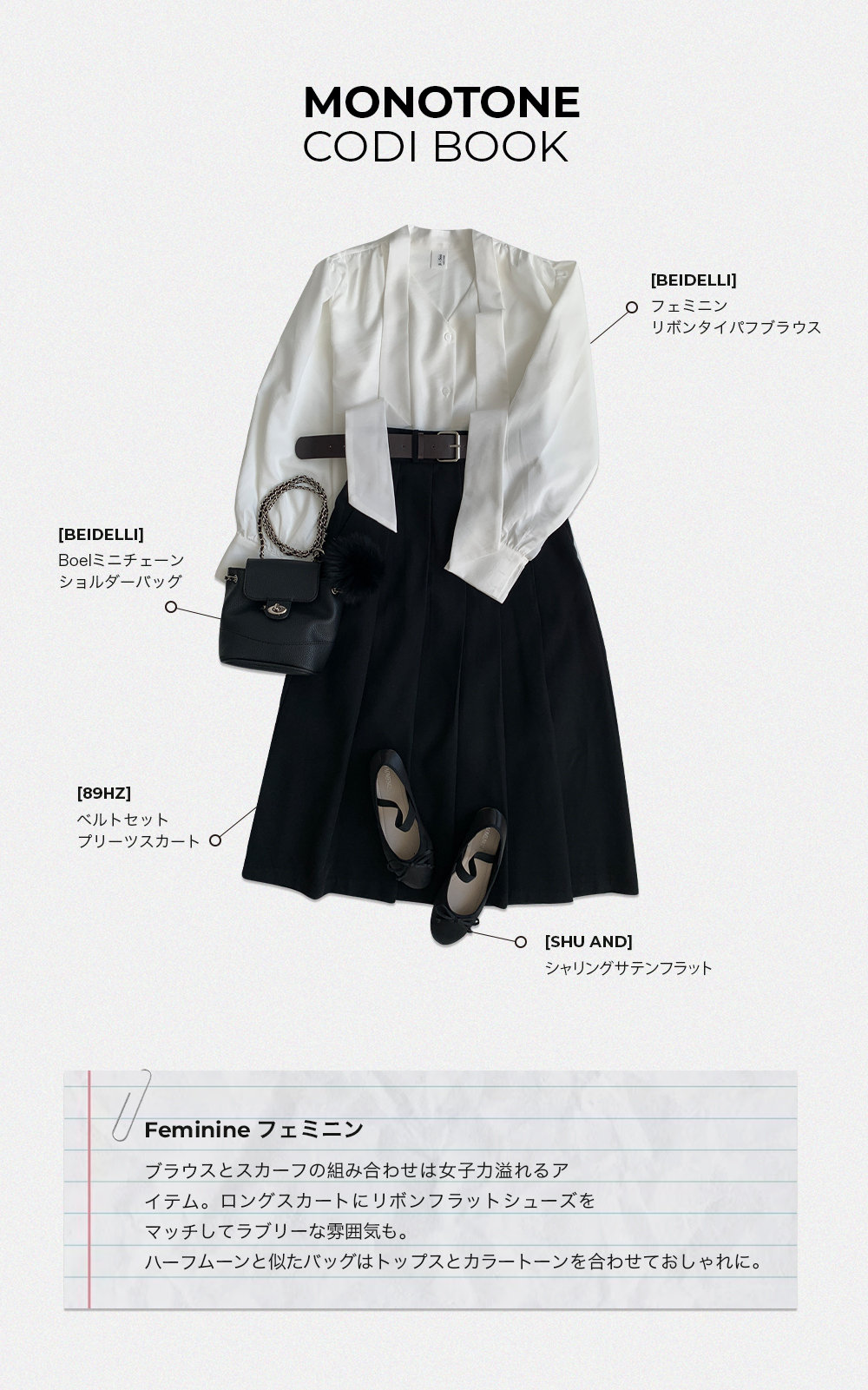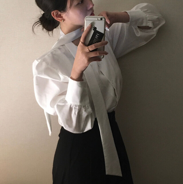 視線が止まる一体型タイブラウス