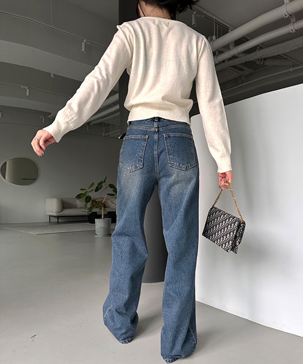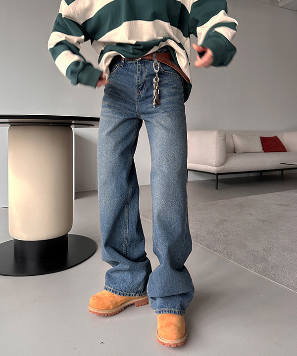 ウォッシュハイウエストデニムパンツ