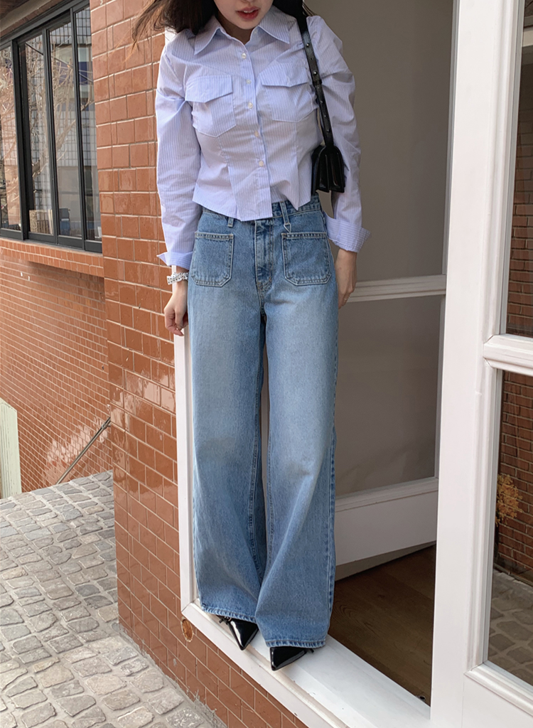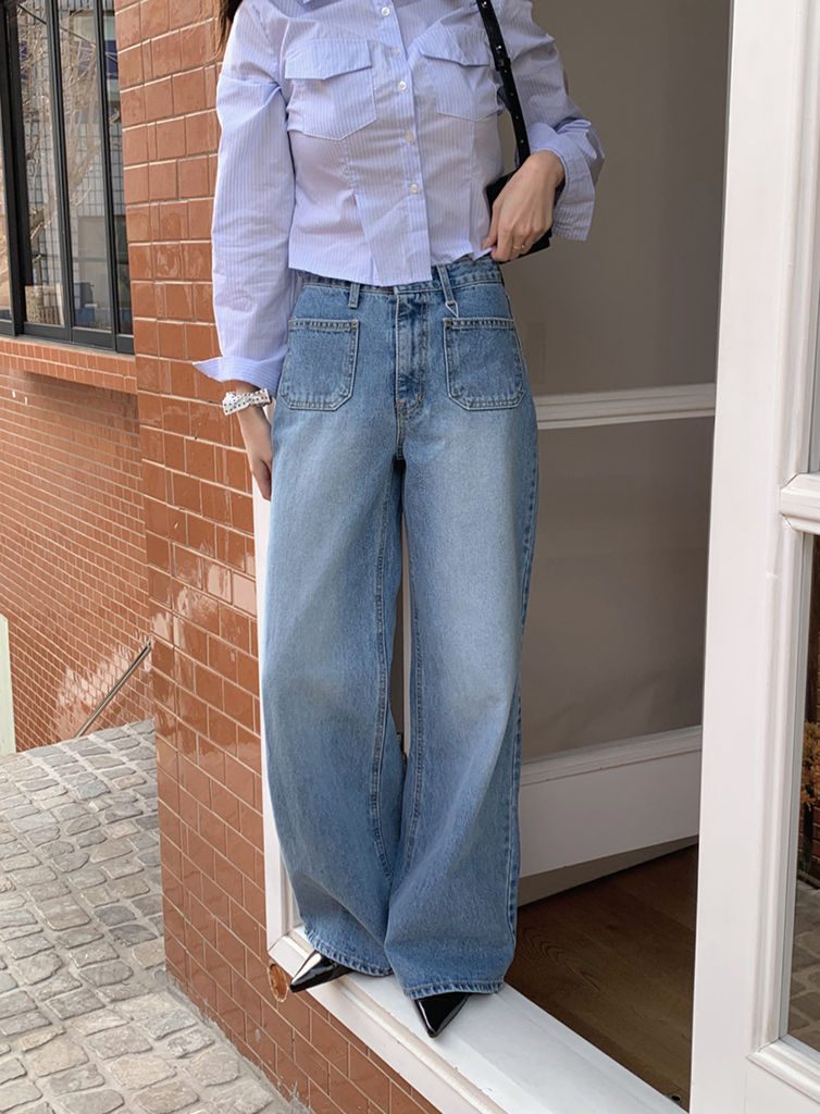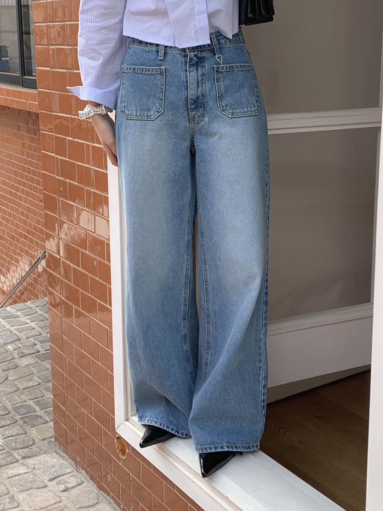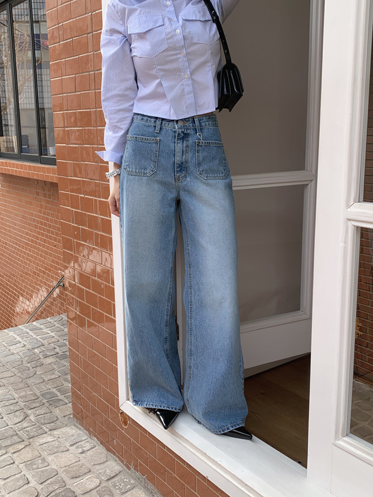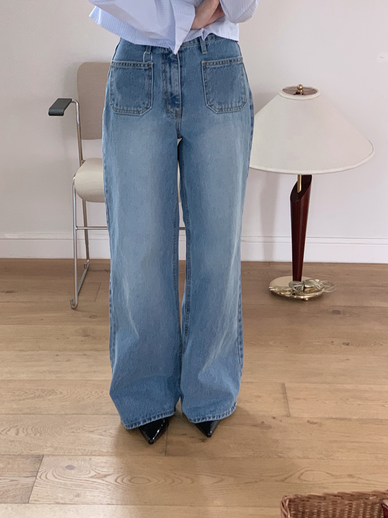 2ポケットウォッシュワイドブーツカットデニムパンツ