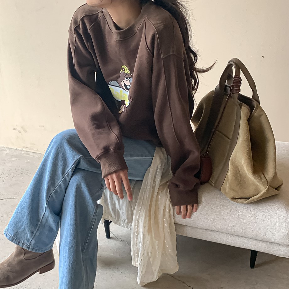 ルーズフィットヴィンテージプリント裏起毛スウェット