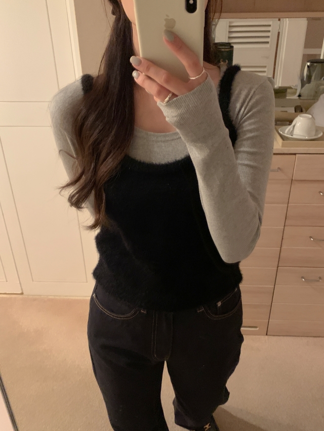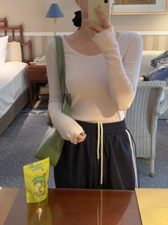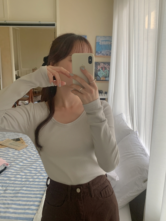 [original]ラウンドUネックリブインナー長袖Tシャツ