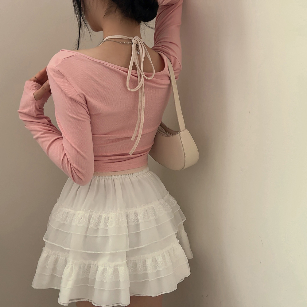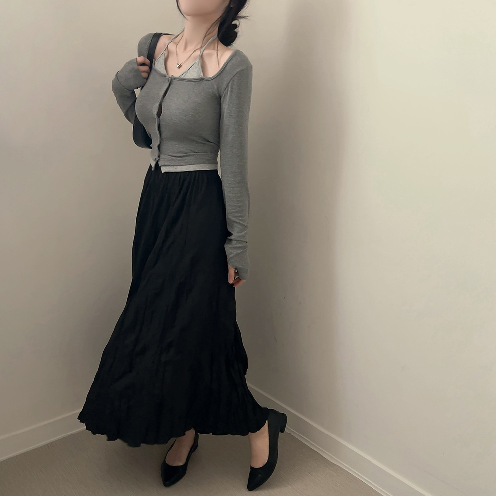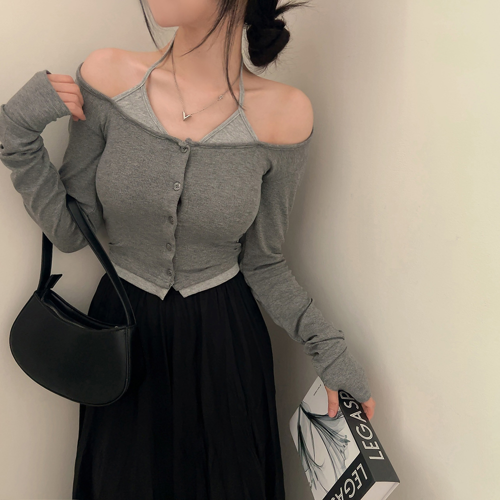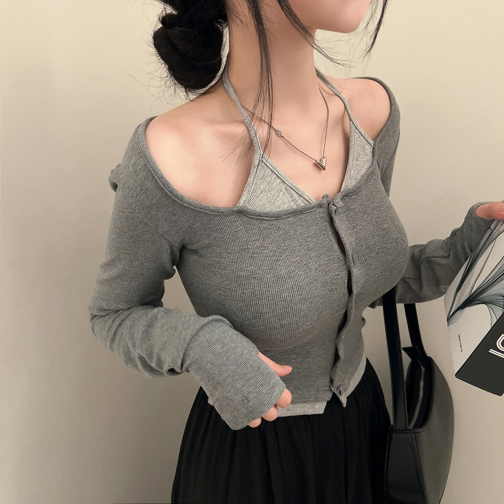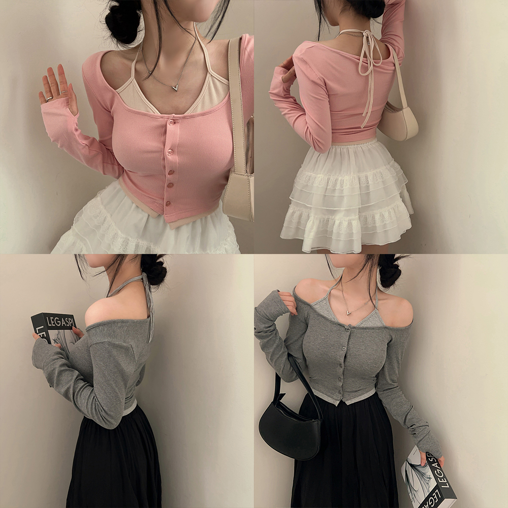 ウォーマーホルターネックノースリーブレイヤードクロップドTシャツ