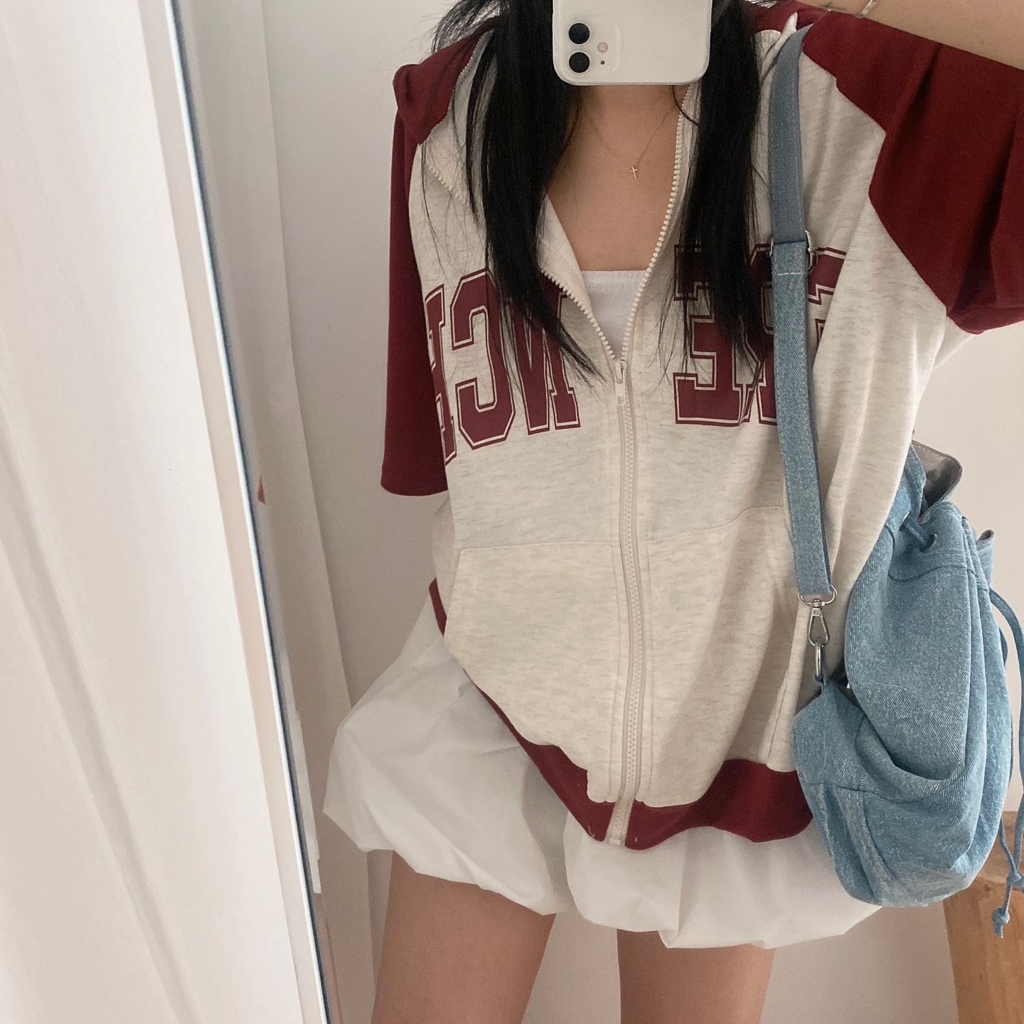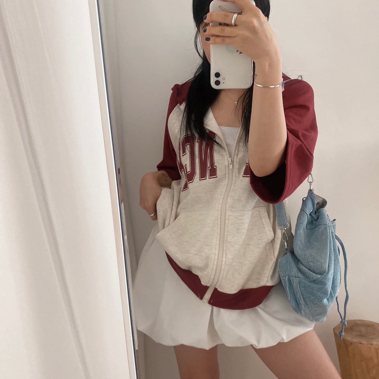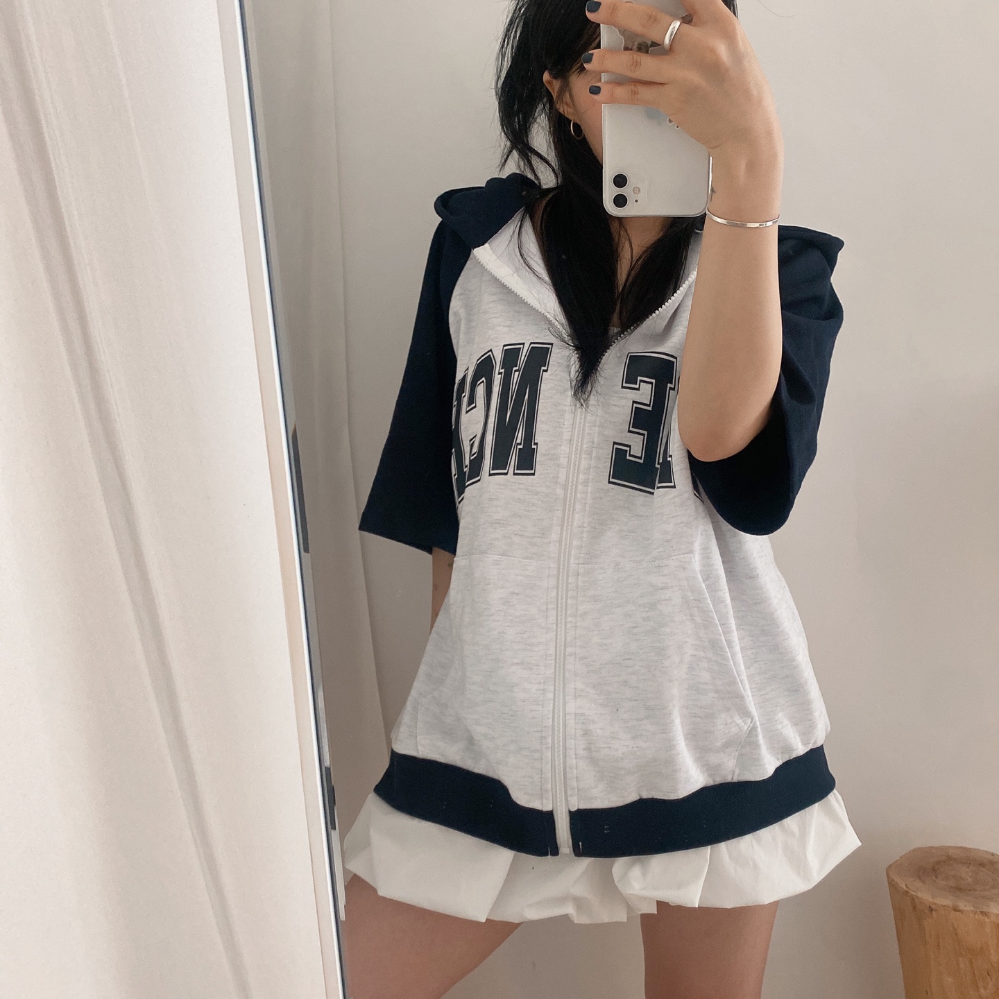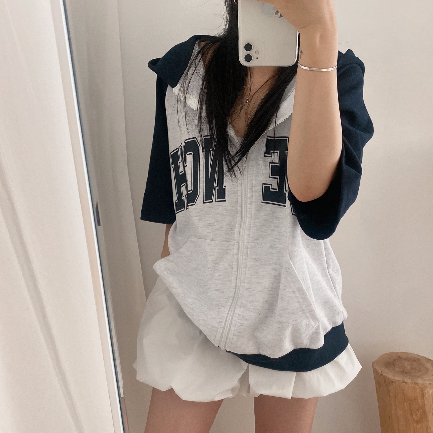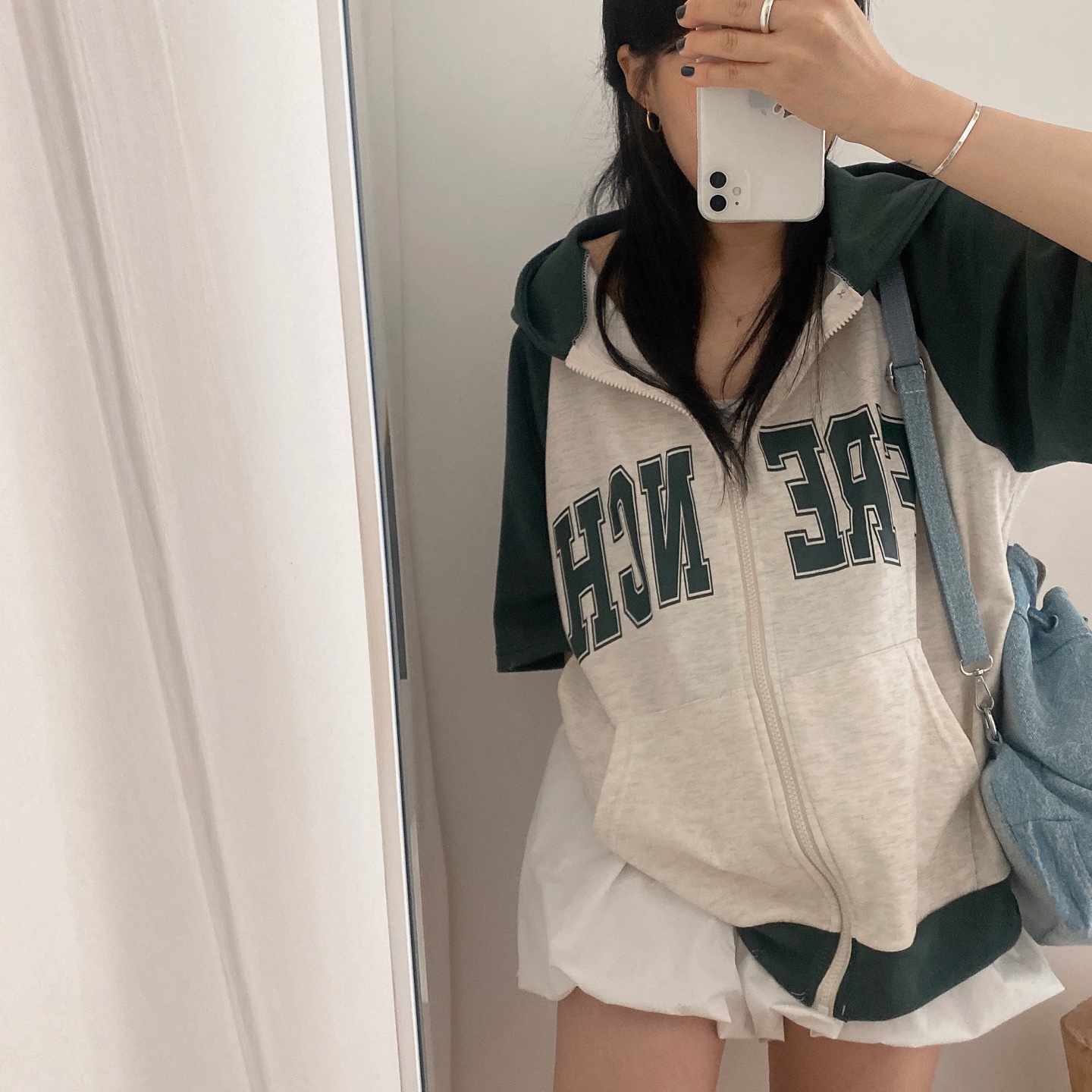 バイカラーラグランフレンチレタリングフード付きジップアップ