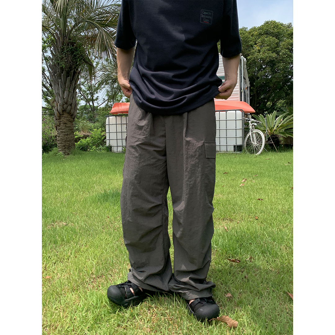 (ユニセックス)カーゴタック入りナイロンワイドパンツ(3Color)