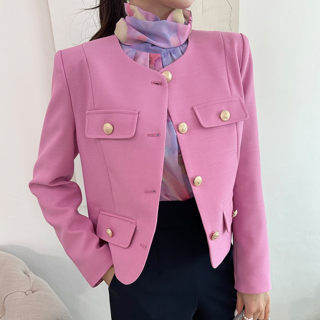 ラウンドネックゴールドボタンジャケット