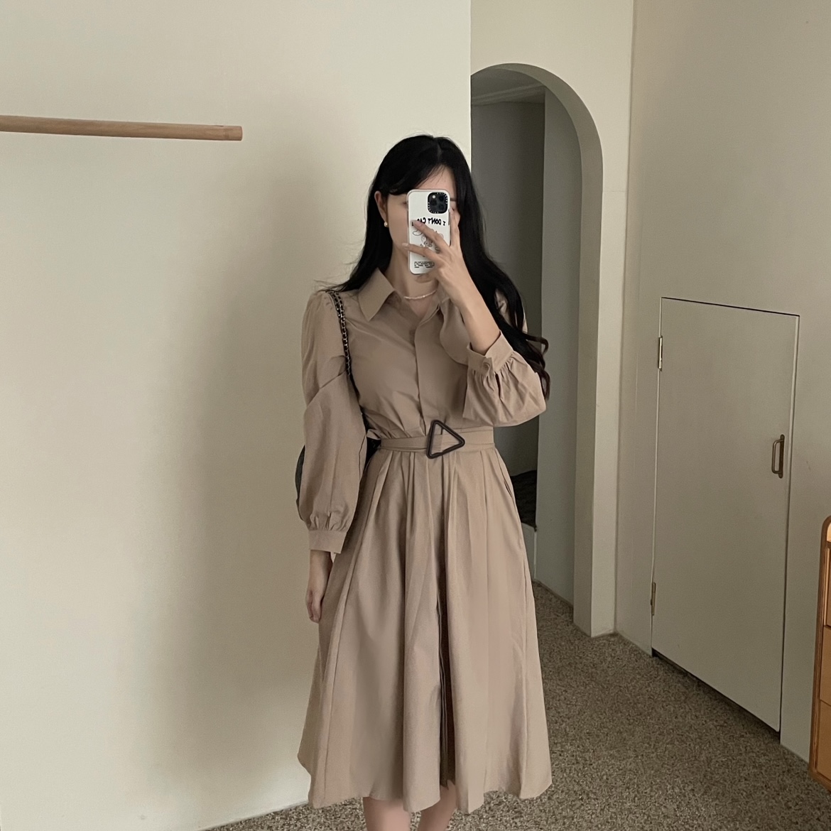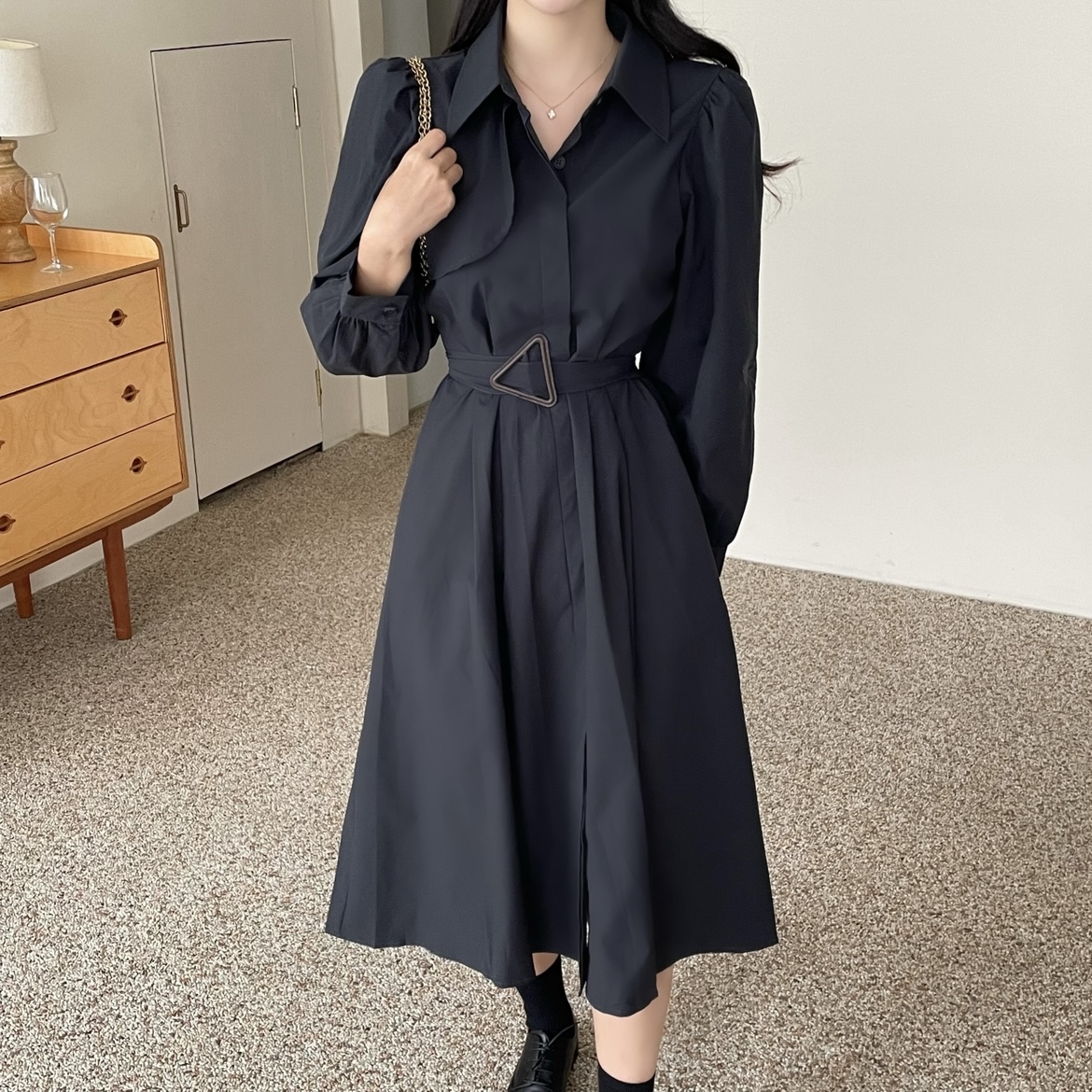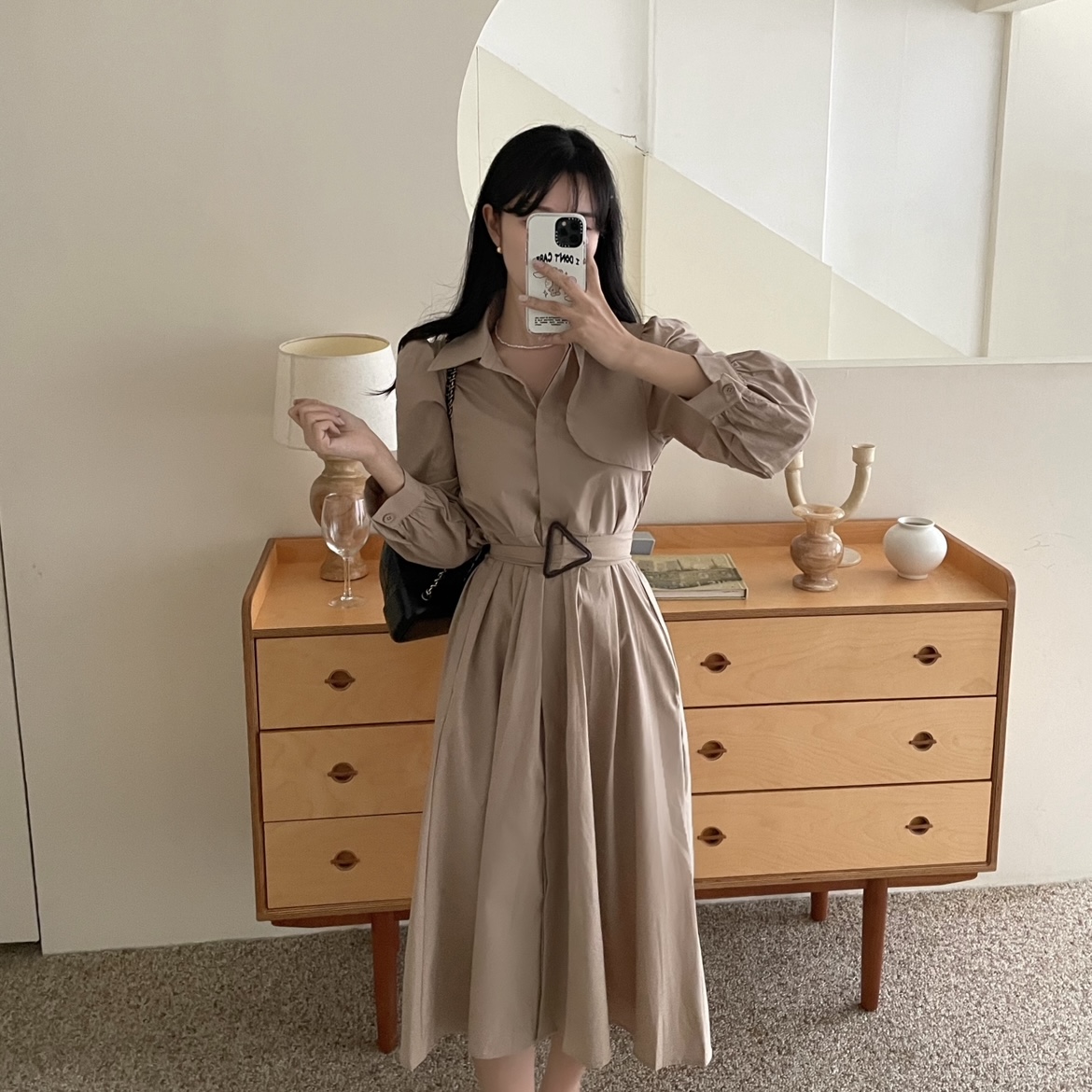 [ベルトset] トレンチコートベルトロングワンピース