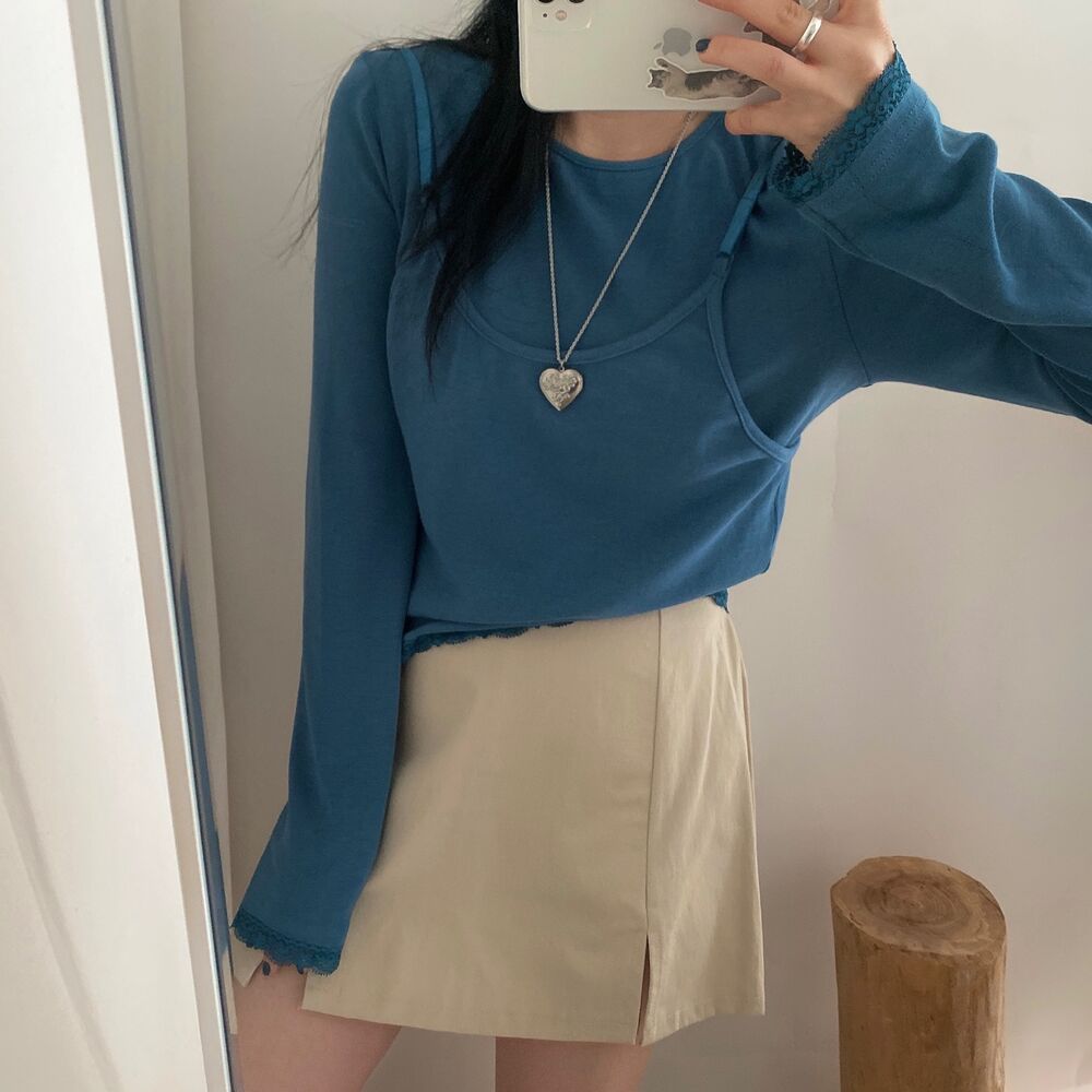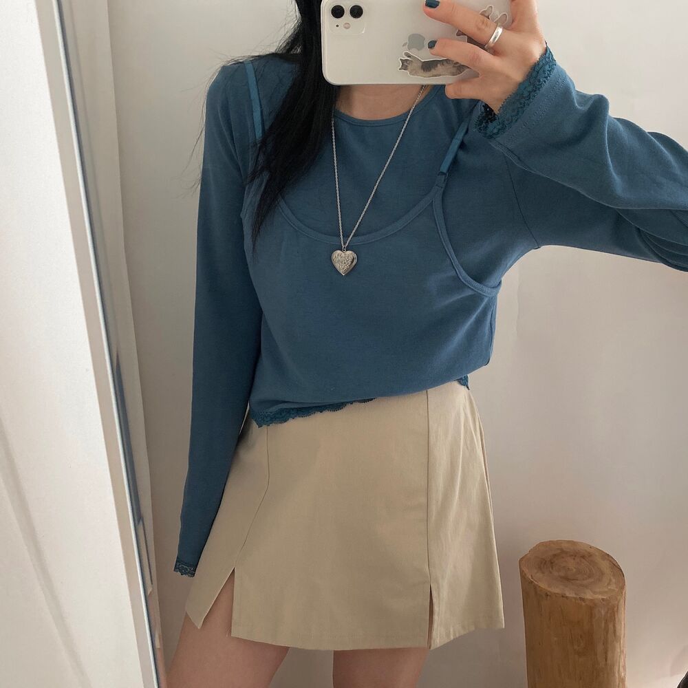 [SET] レイヤードノースリーブビスチェ+長袖Tシャツセット