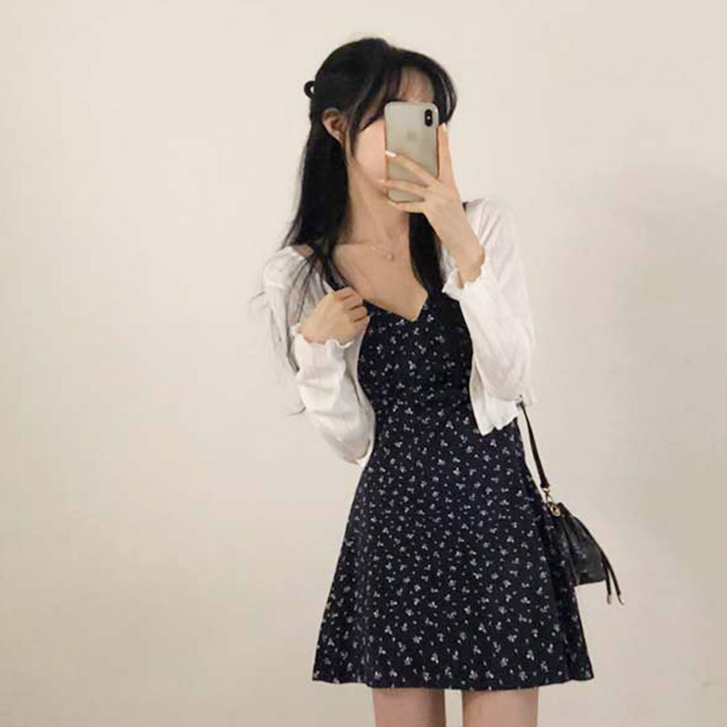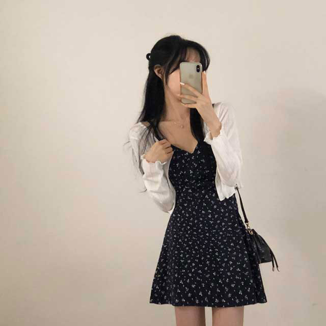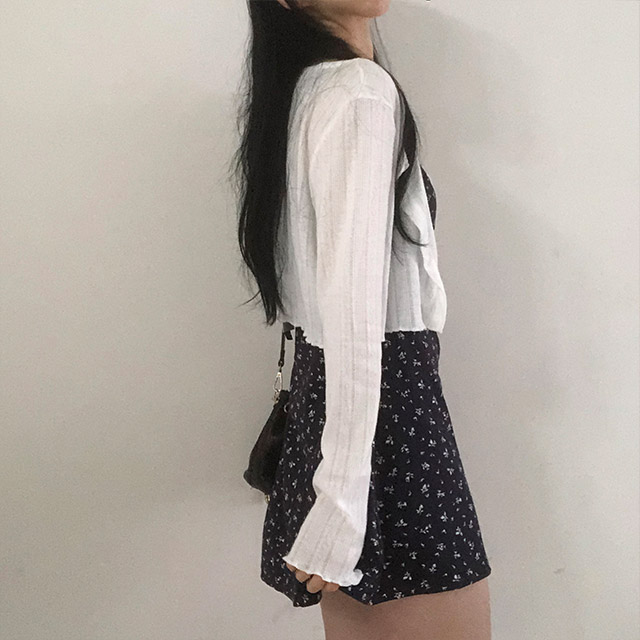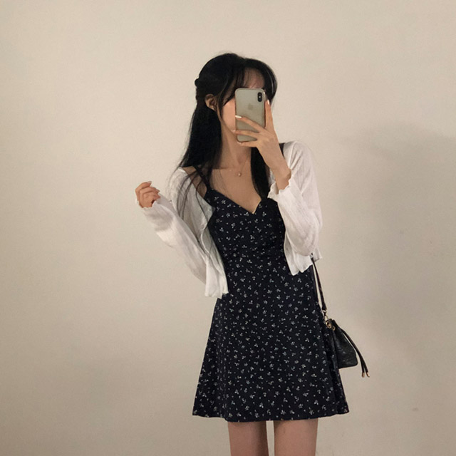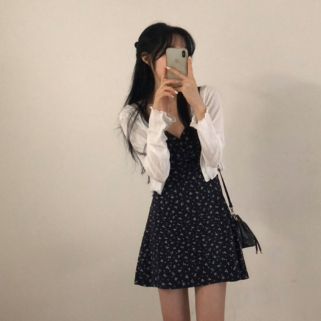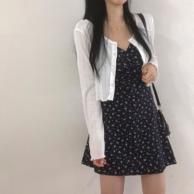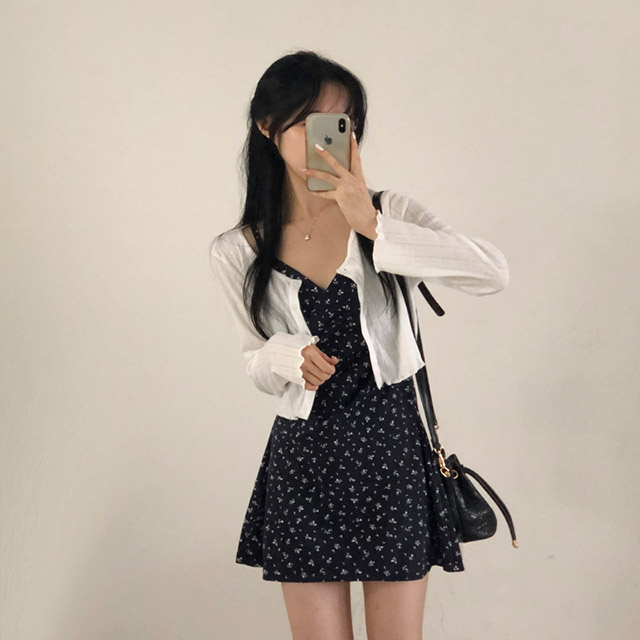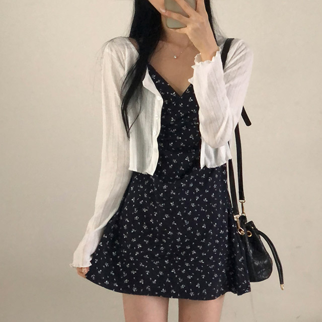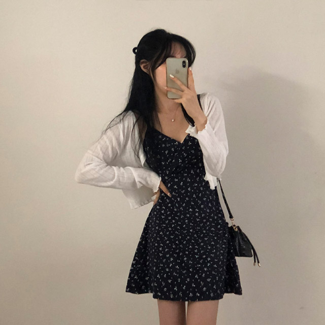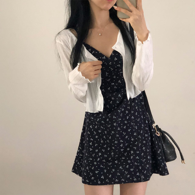 [セット]フリルクロップドカーディガン&フラワーノースリーブワンピース