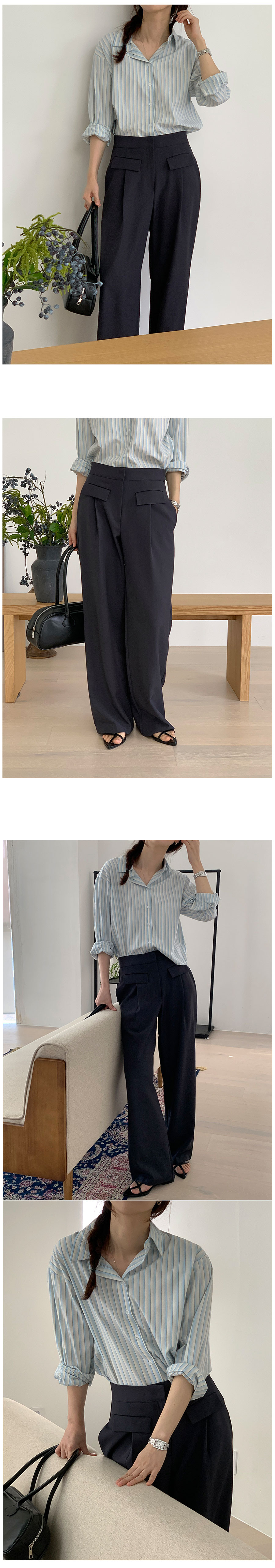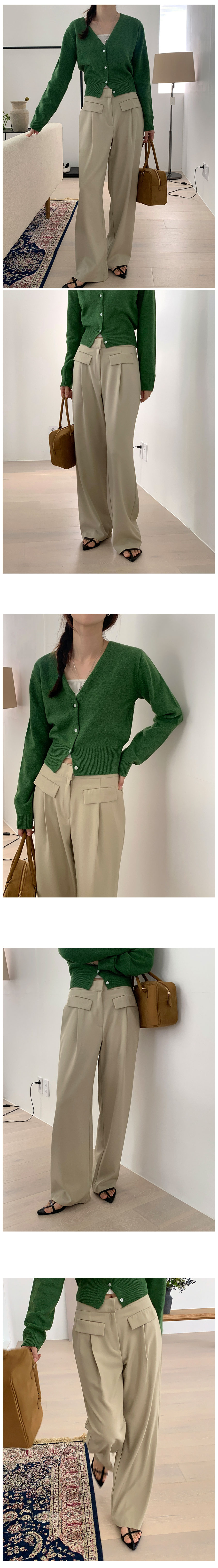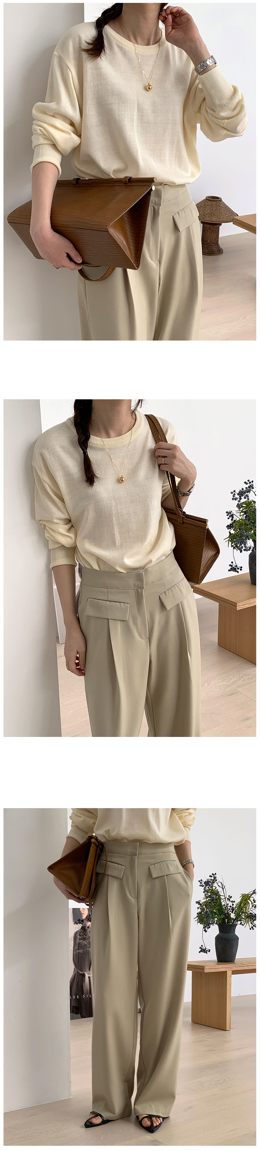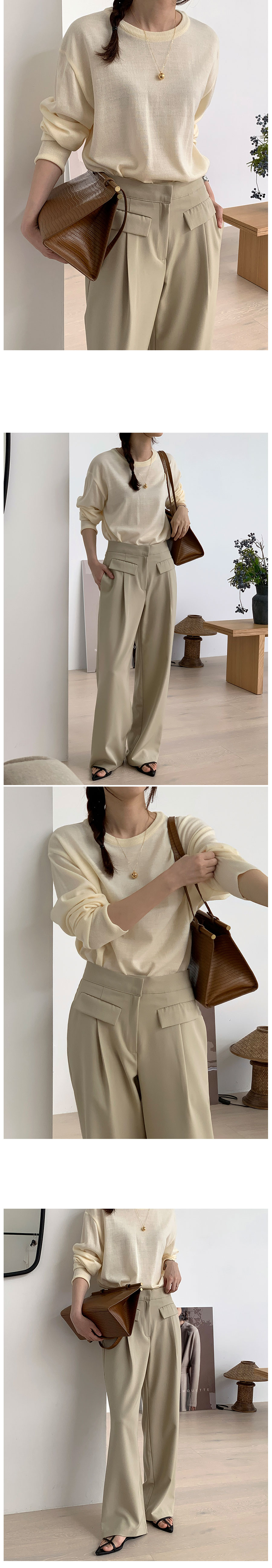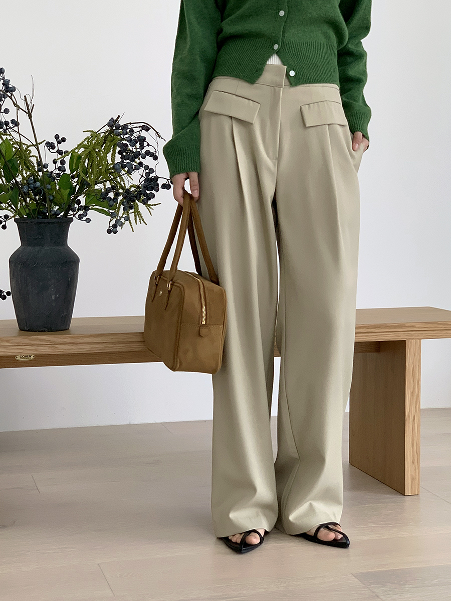 タック入りポケットワイドハイウエストスパンロングスラックス