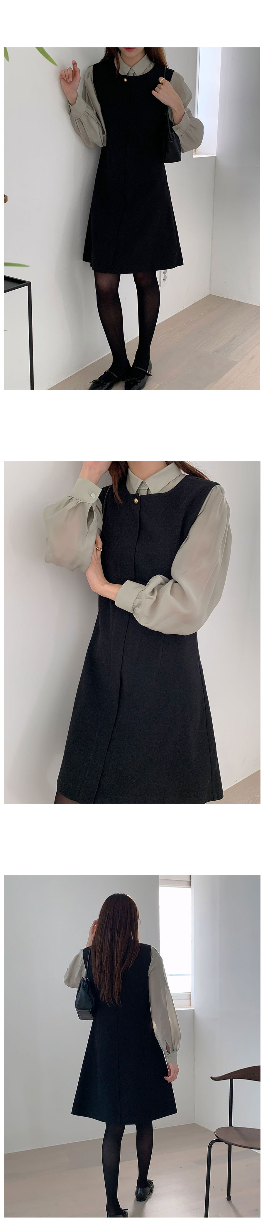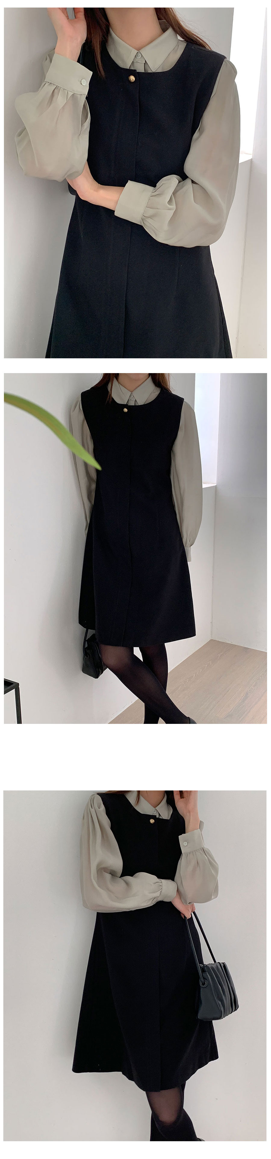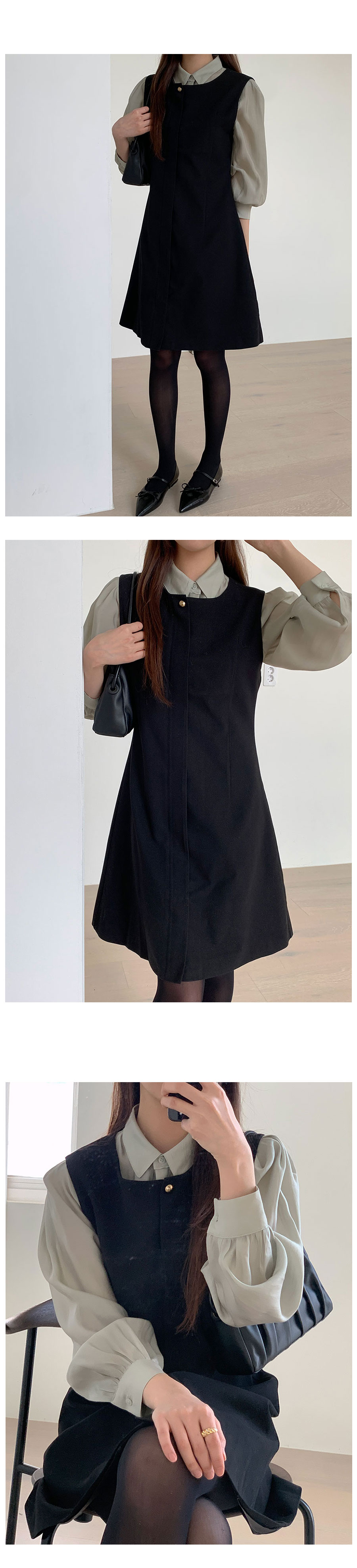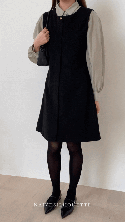 裏起毛Aラインゴールドボタンビスチェミドル丈ワンピース2color