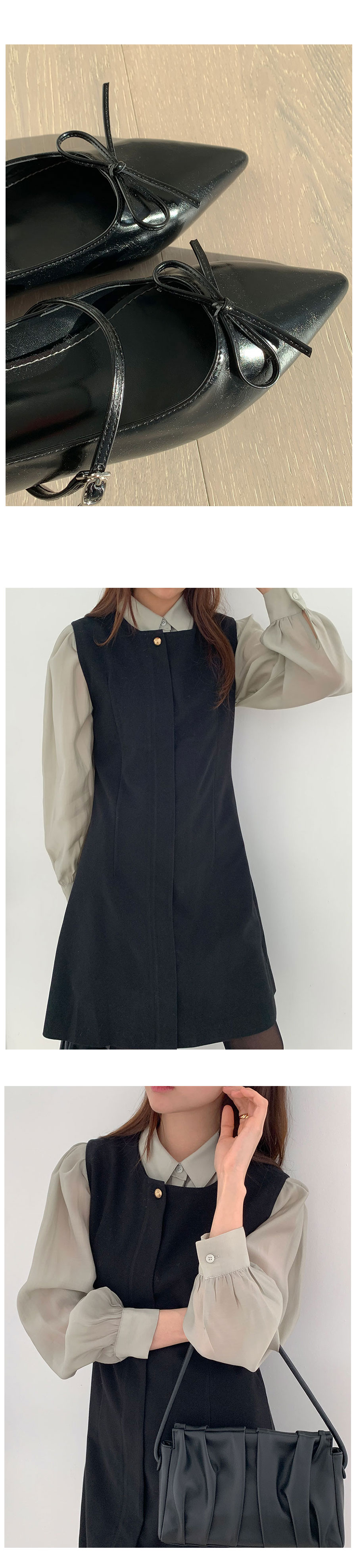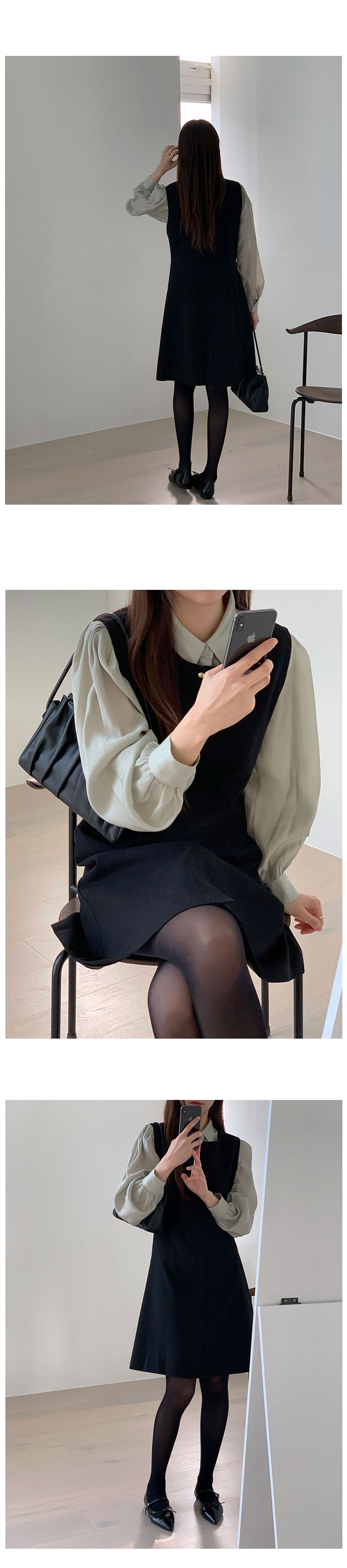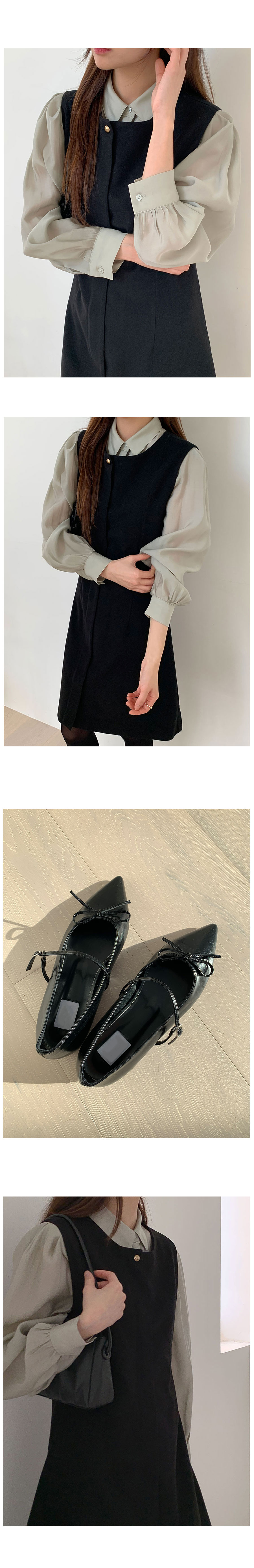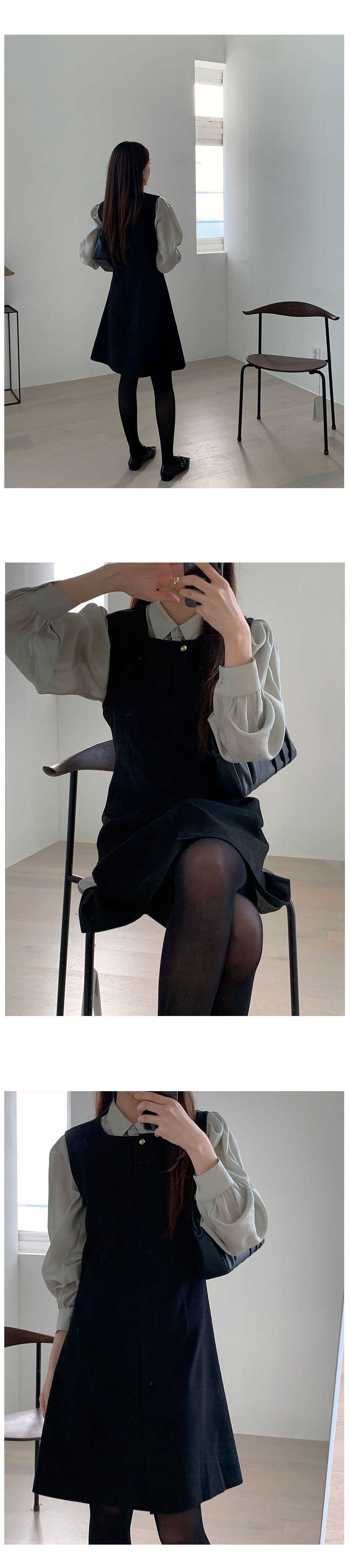 裏起毛Aラインゴールドボタンビスチェミドル丈ワンピース2color