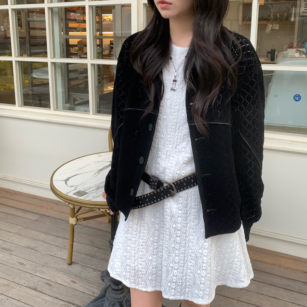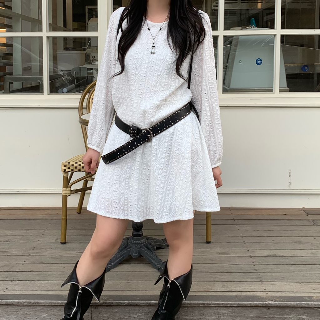 [裏地付き] レースパンチングミニワンピース