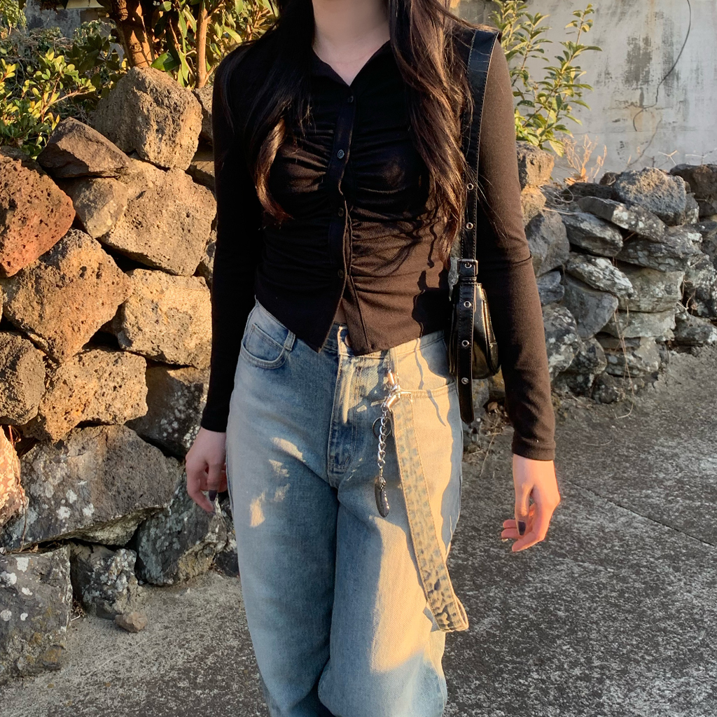 カラーシャーリングクロップドTシャツ