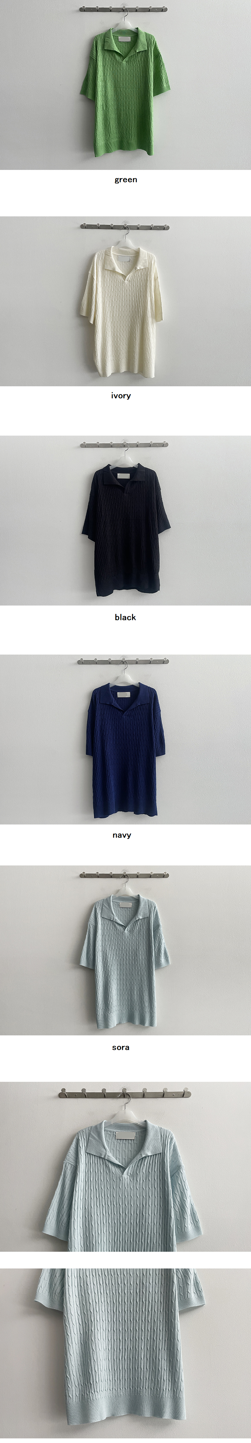 ドシェルツイストオープンカラー半袖ニット(5color)