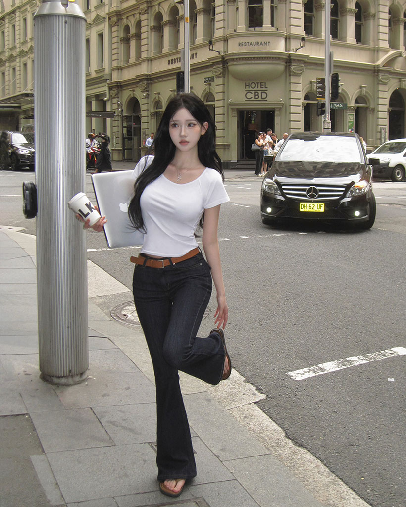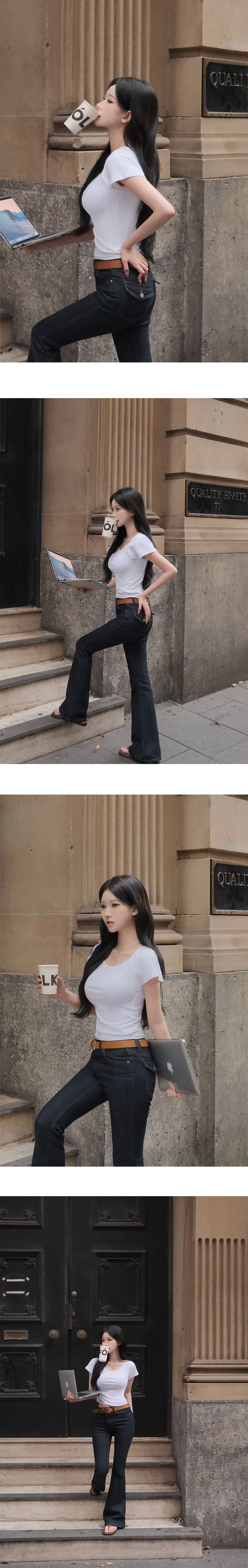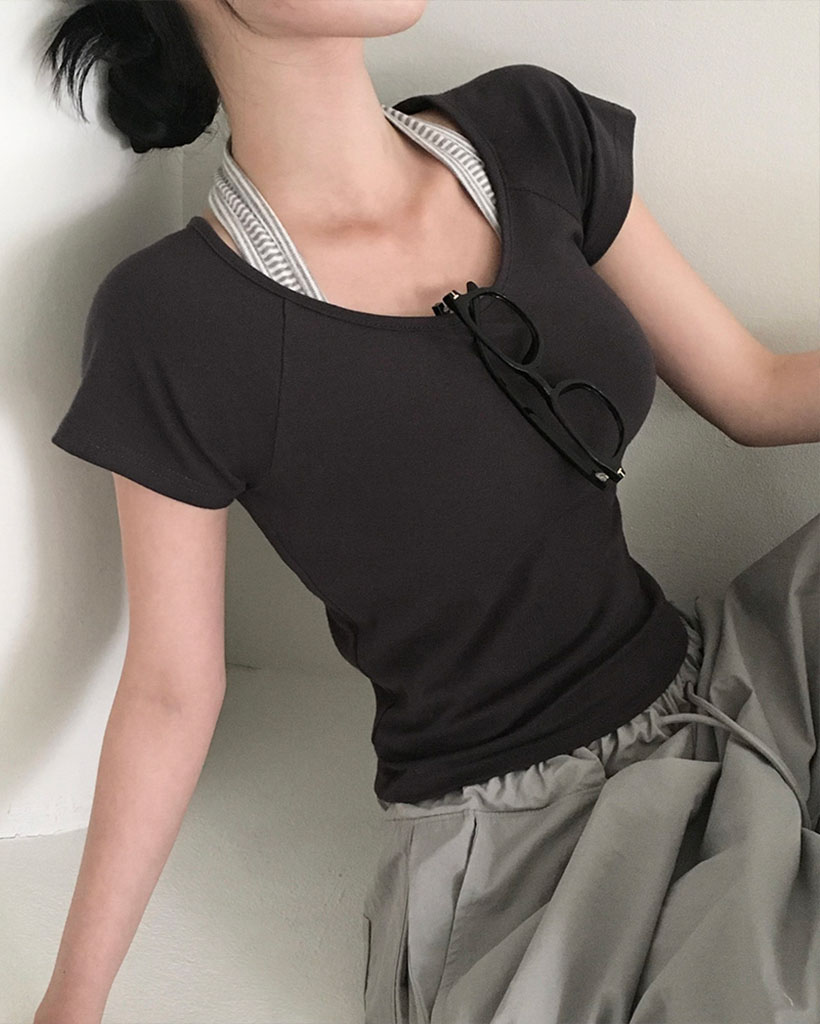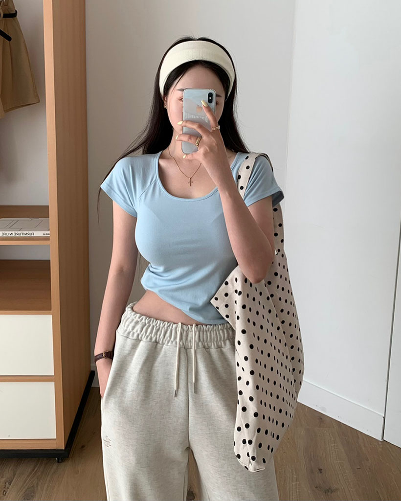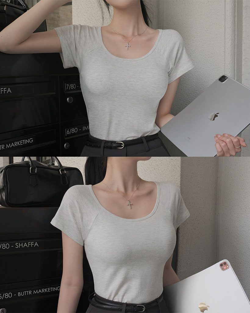 鎖骨ラインがほのかに見える深いUネックデザインで