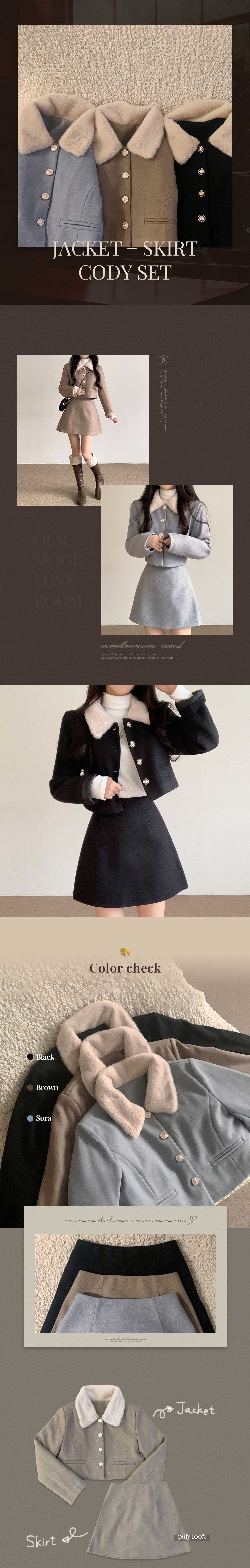 キルティング裏地ファーカラージャケットAラインミニスカート2ピース