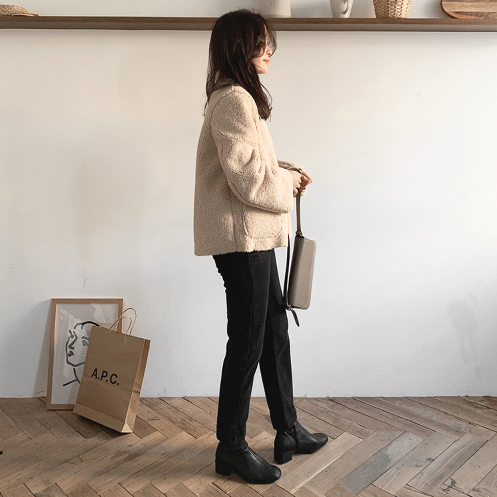 *크림은 마냥 밝아보이지 않게, 다크한 옷들과는 더욱 잘 어울리도록