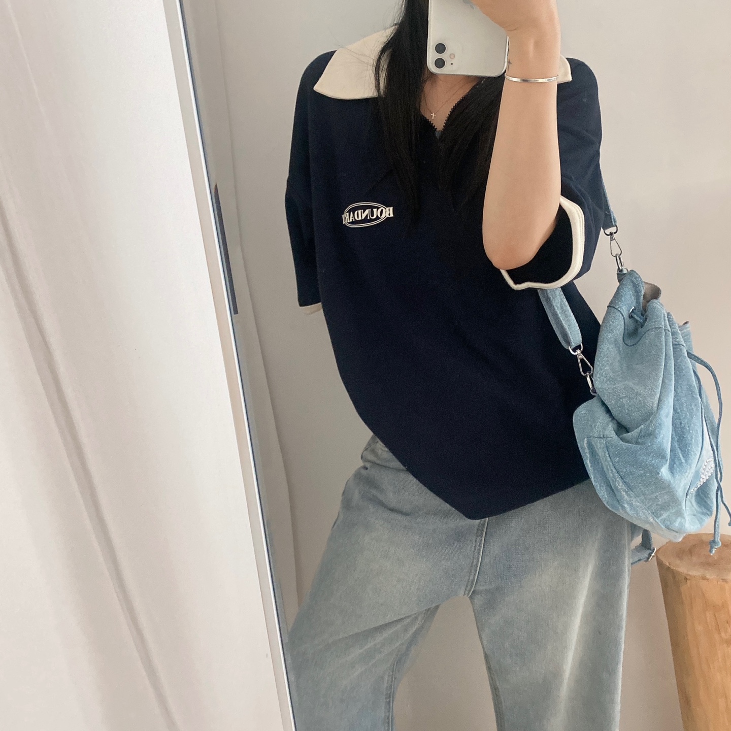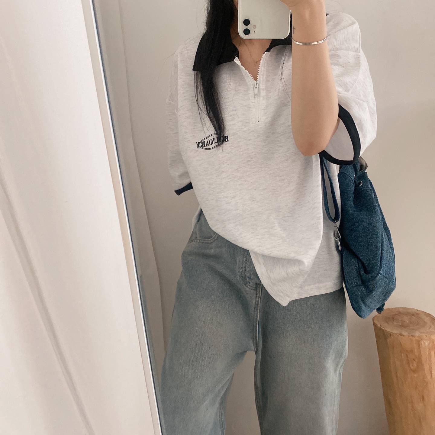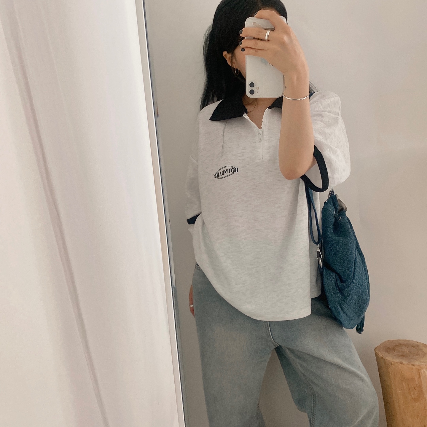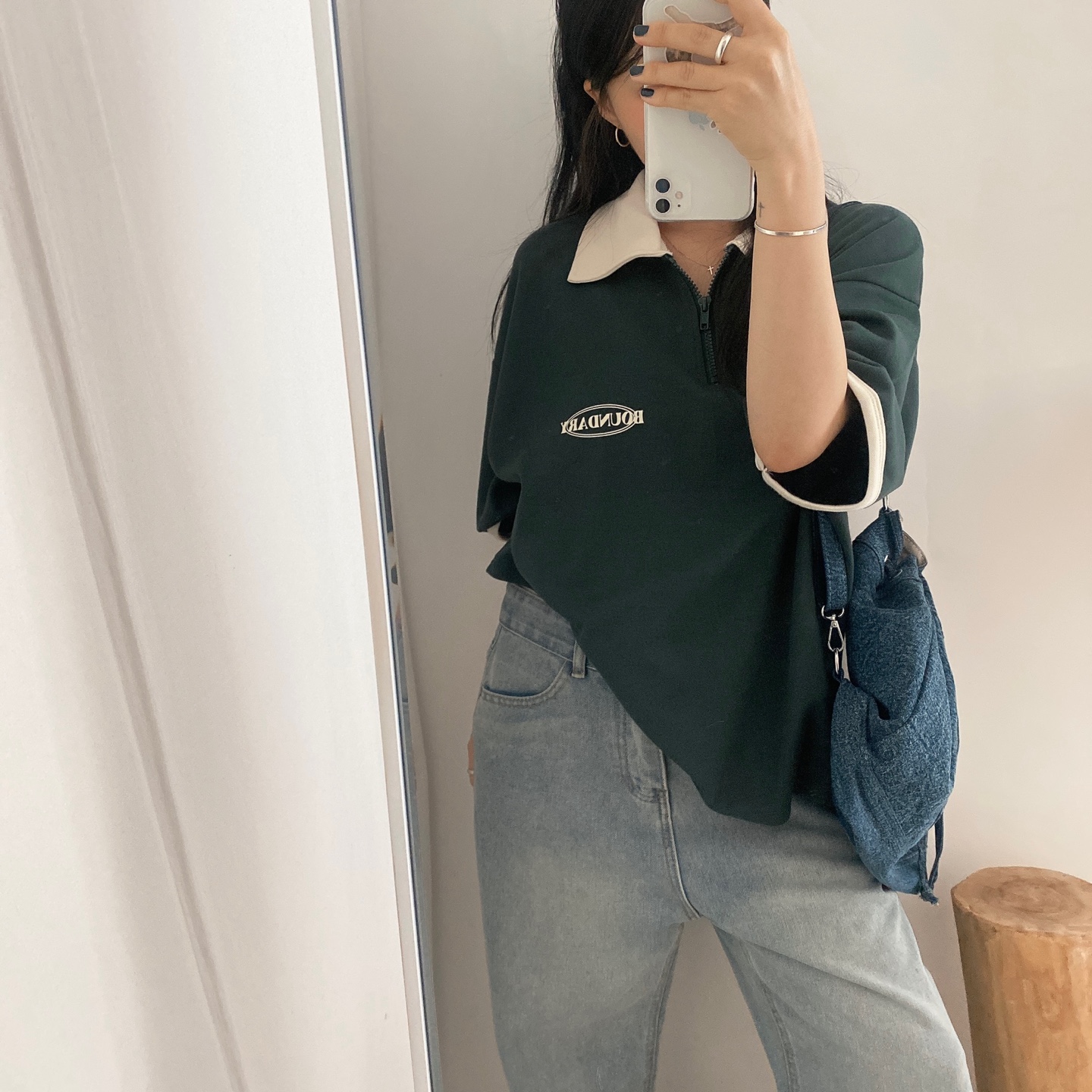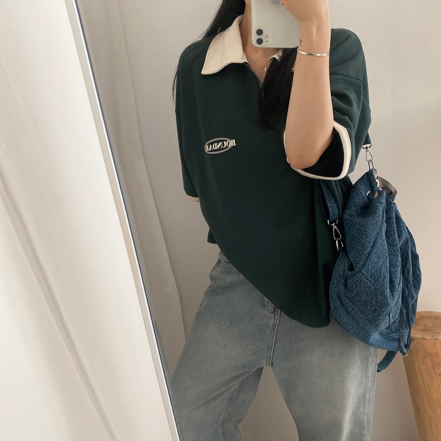 カラーハーフジップレタリングアノラック半袖Tシャツ