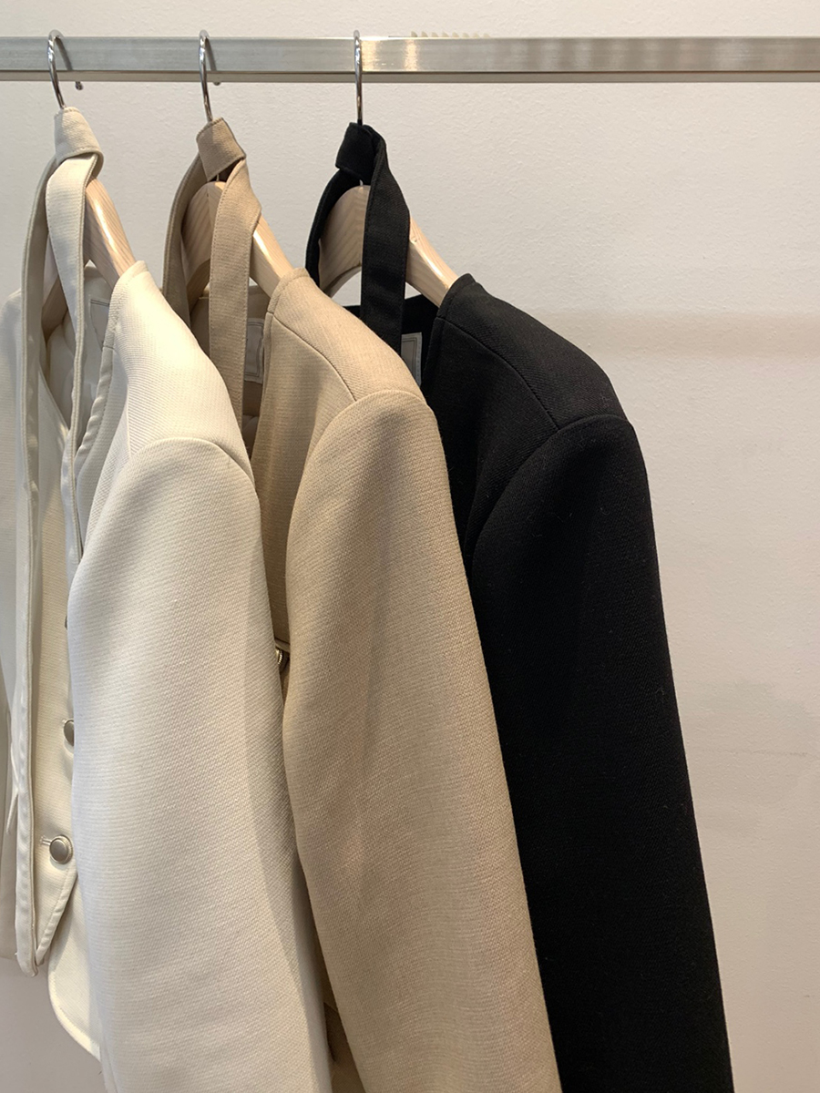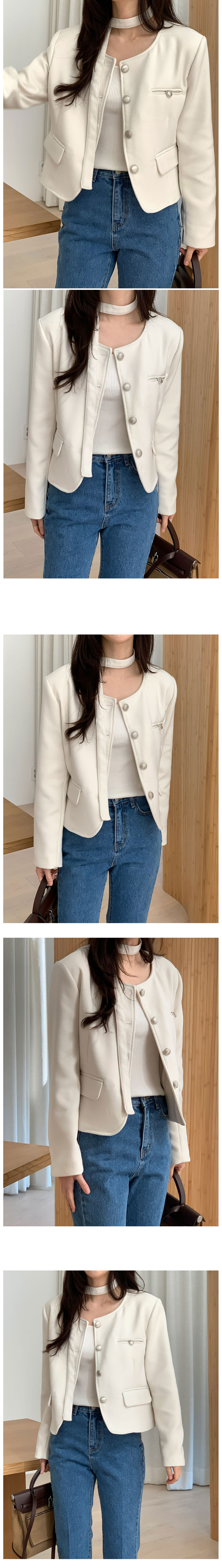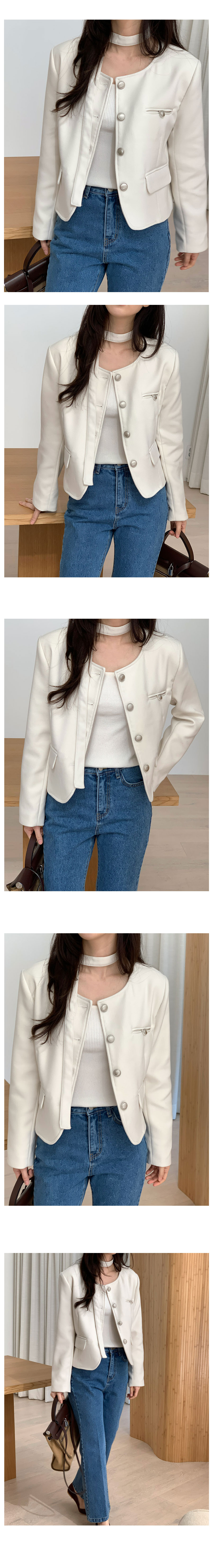 【オケージョン】ノーカラーラウンドストラップセミクロップドジャケット