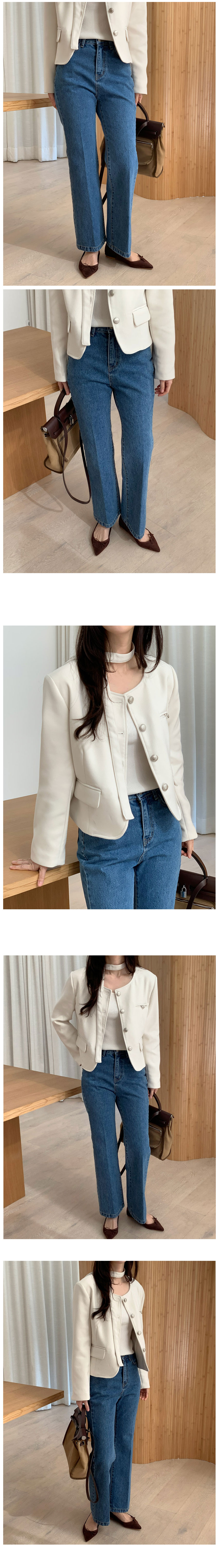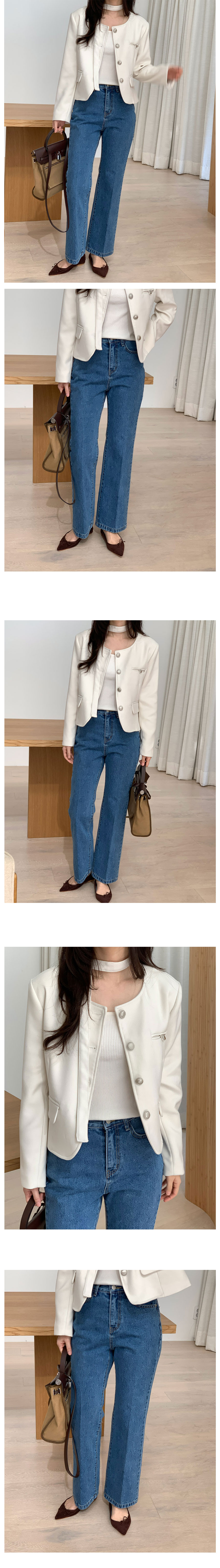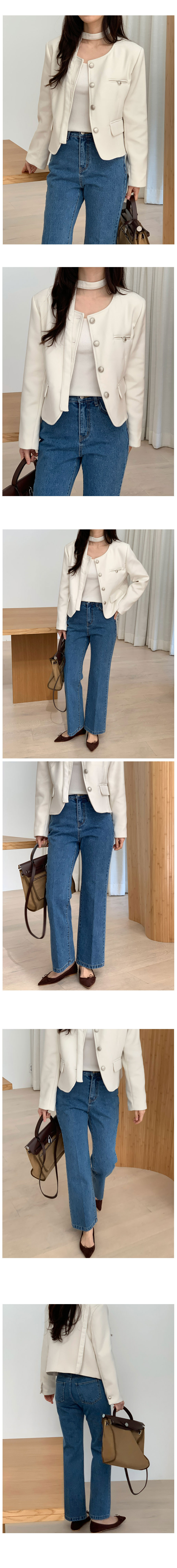 【オケージョン】ノーカラーラウンドストラップセミクロップドジャケット