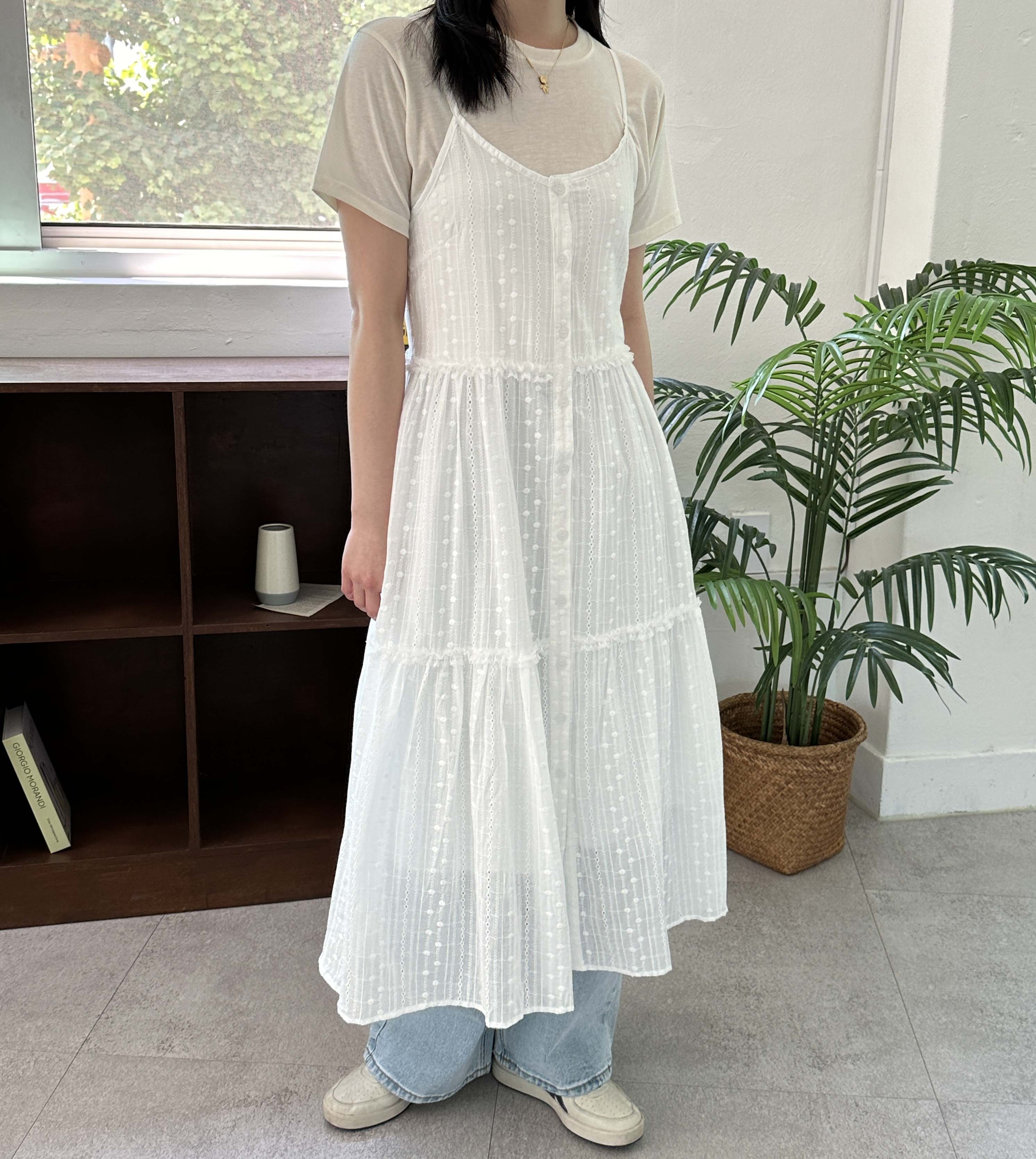 [裏地付き] パンチングフレアノースリーブロングワンピース[1color]