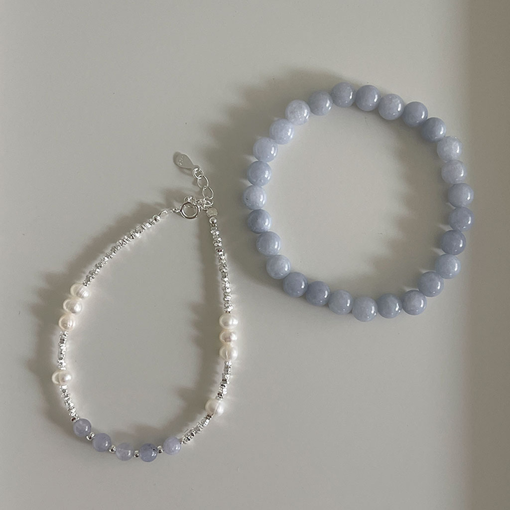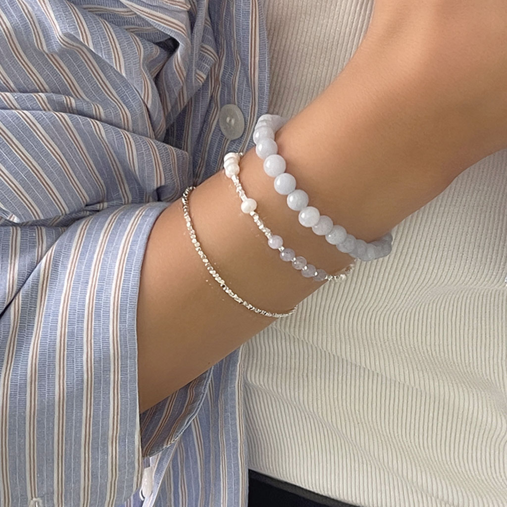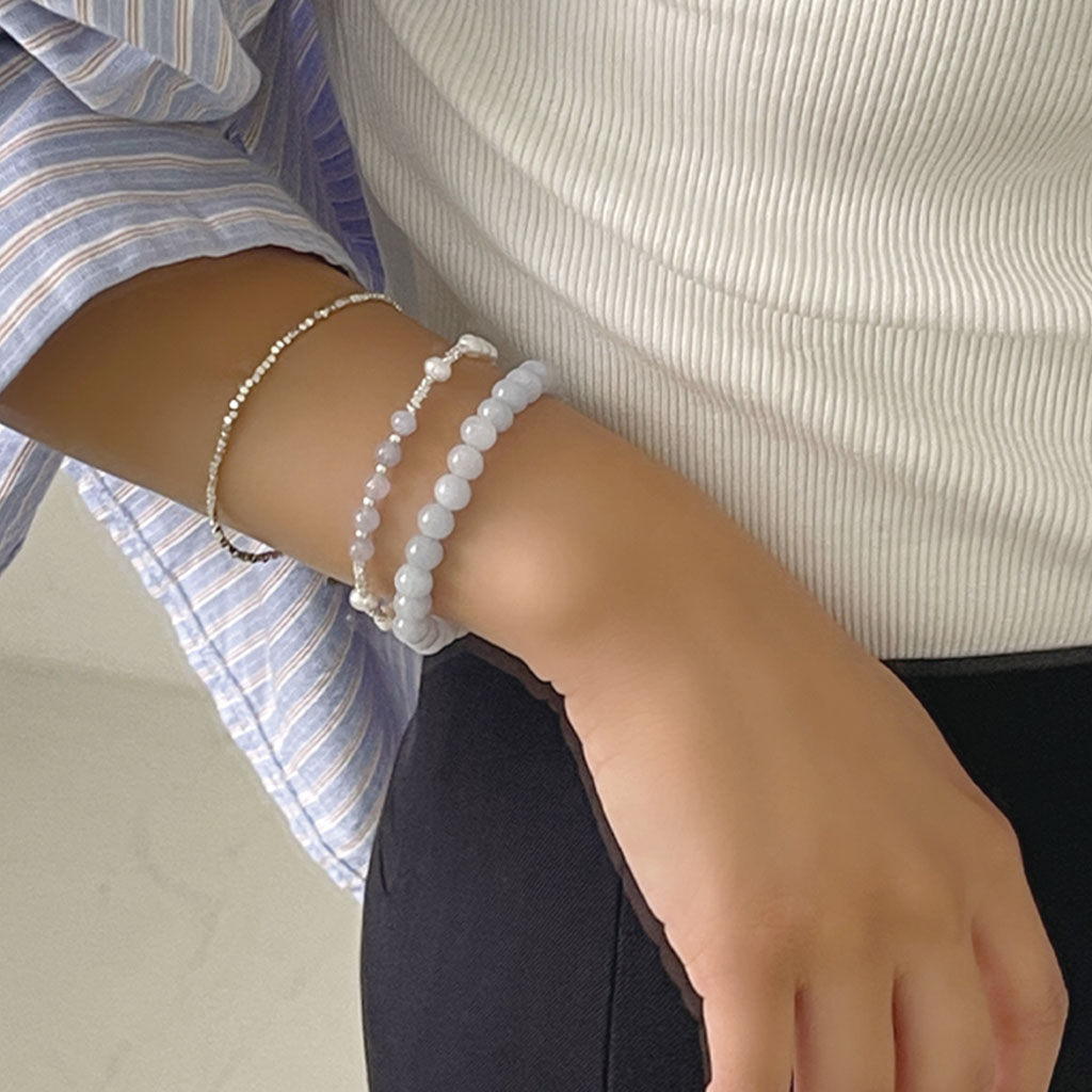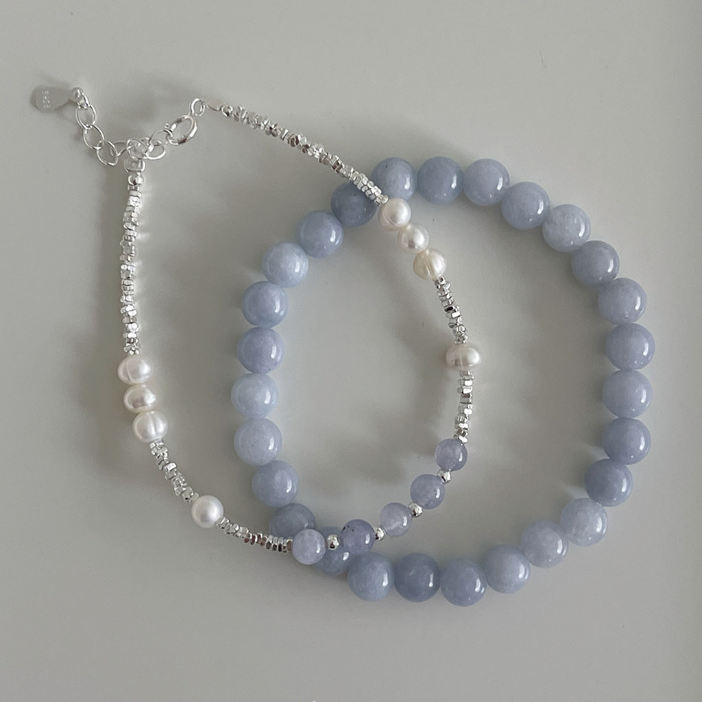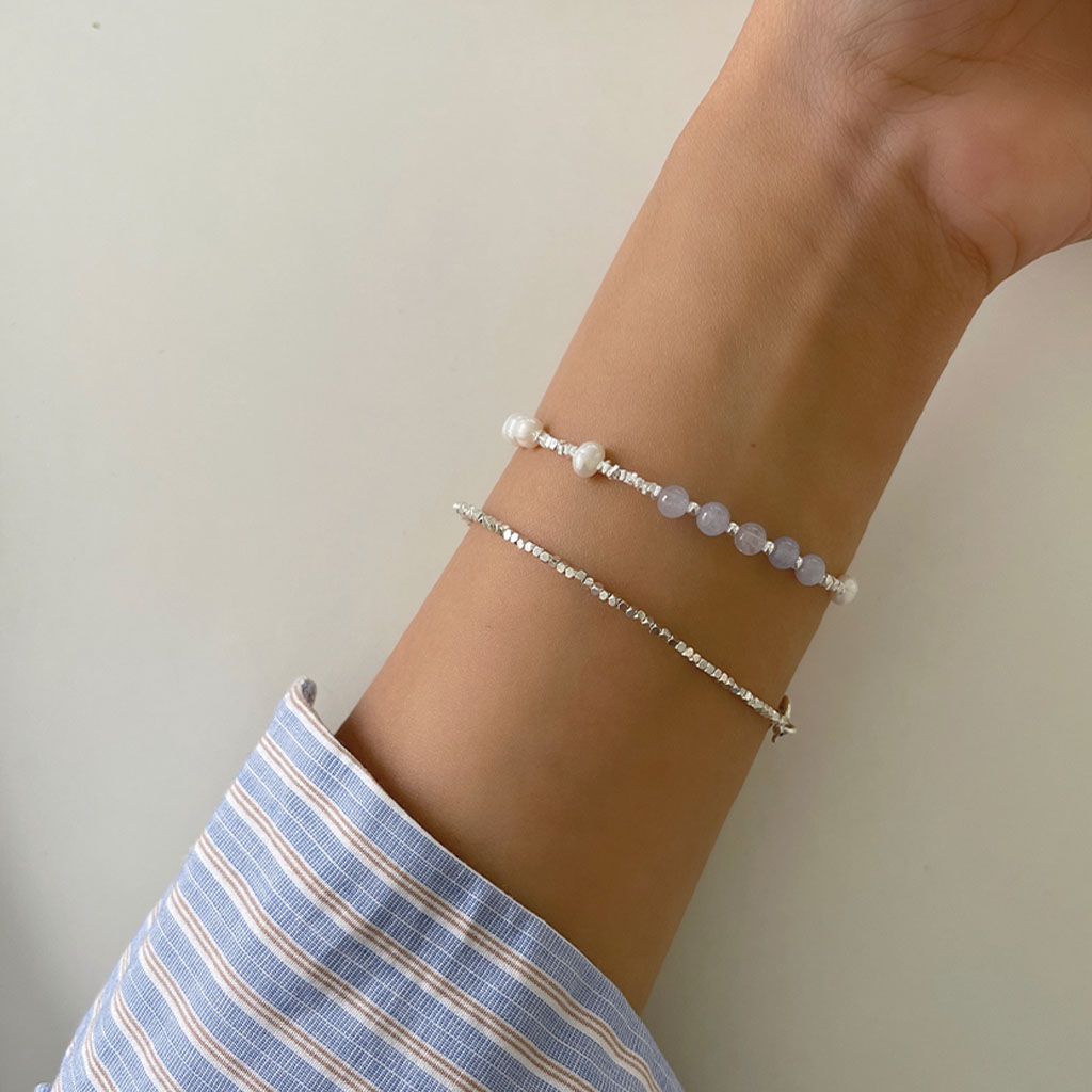 [シルバー925]淡水パールシルバーアクアマリンストーンブレスレット