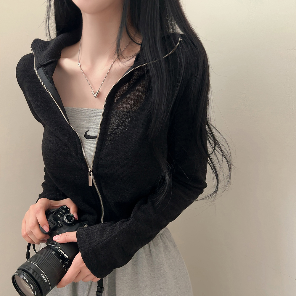 カジュアルカラーハイネックセミクロップド長袖パーカー