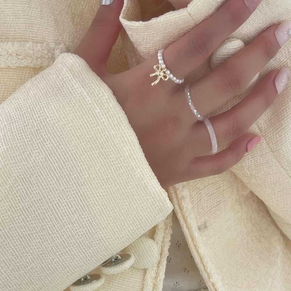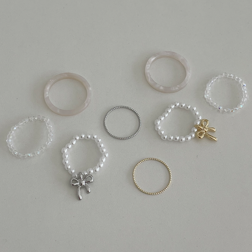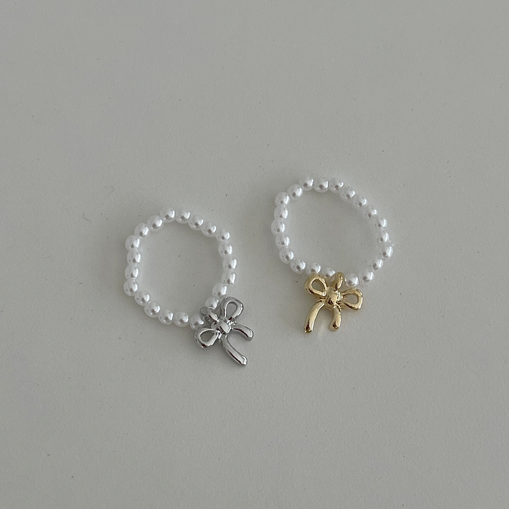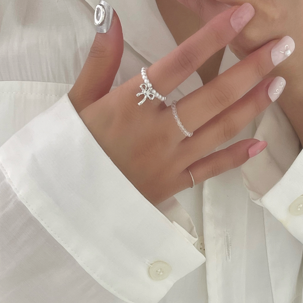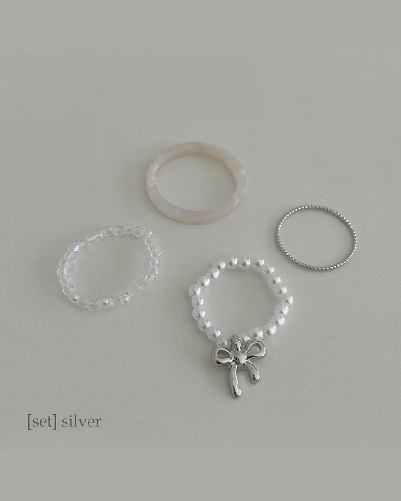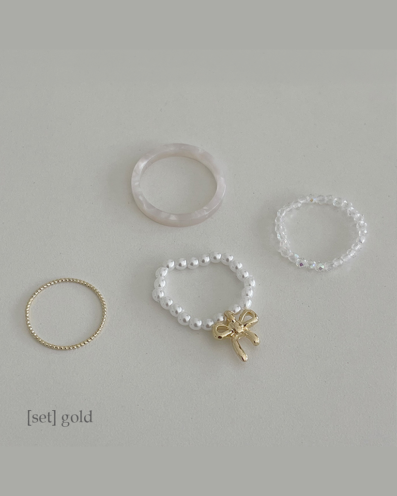 [4点セット] リボンパールビーズレイヤードリングセット(2color)