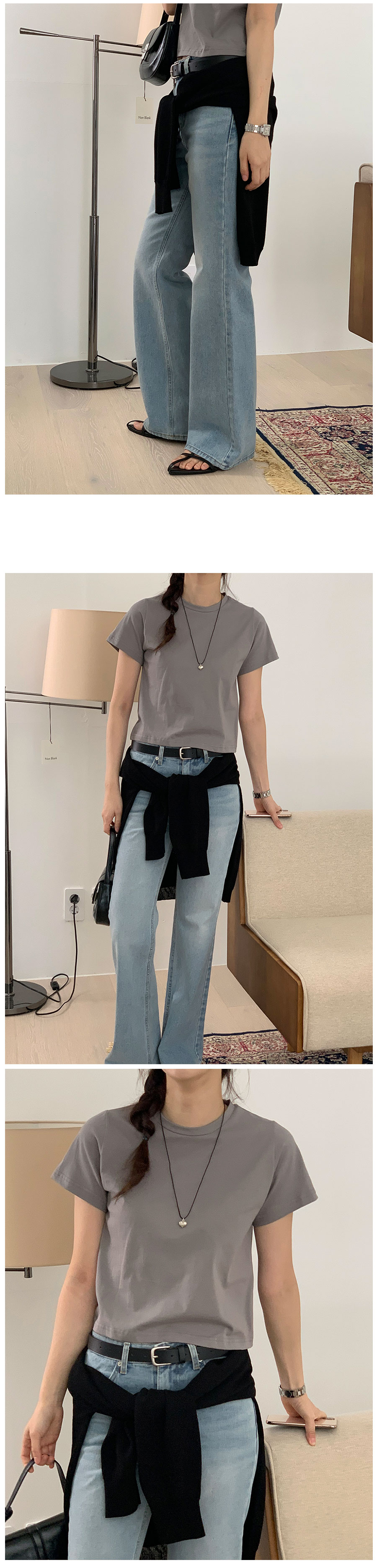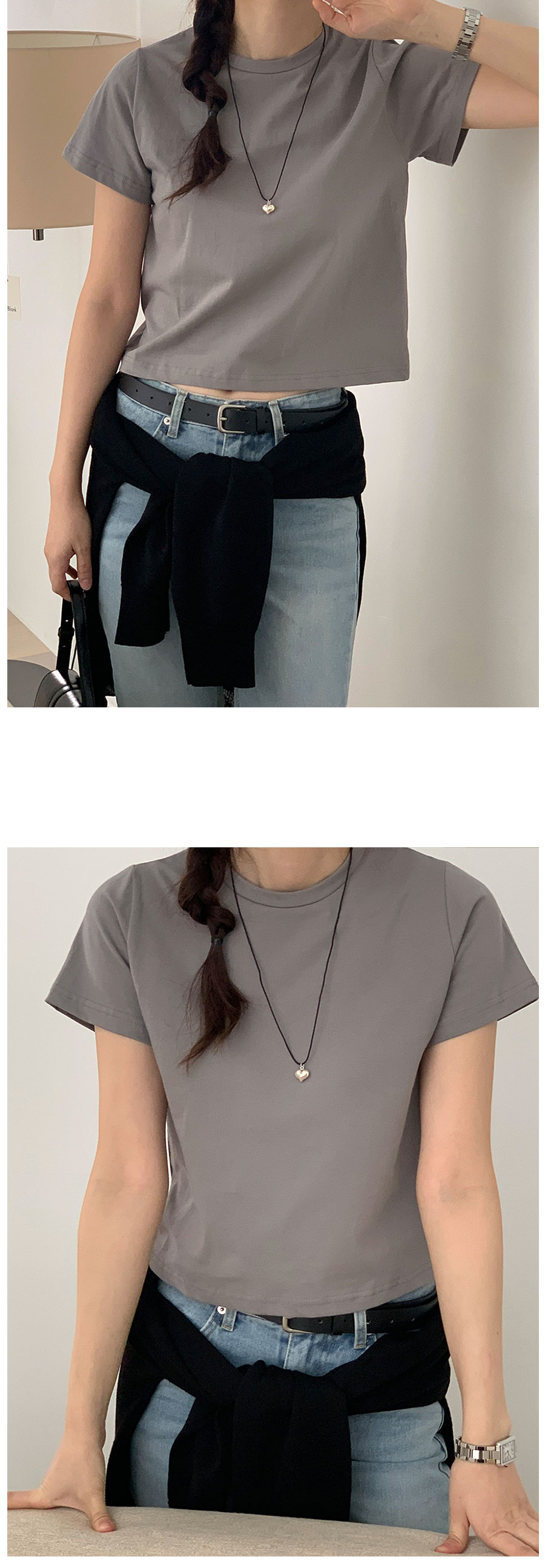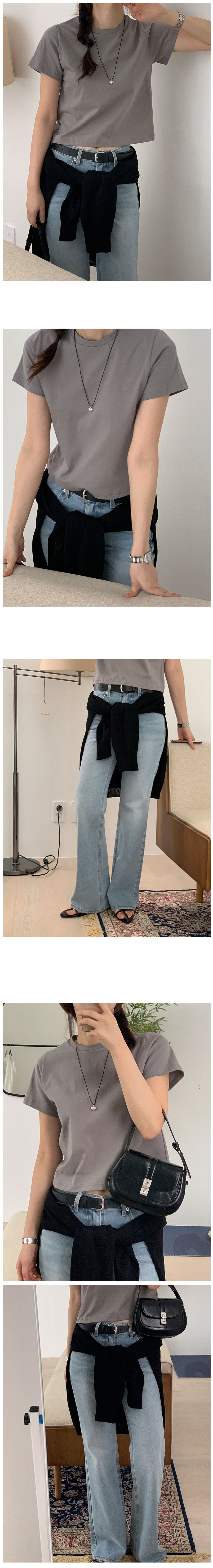 ラウンドベーシックセミクロップドインナー半袖Tシャツ8color