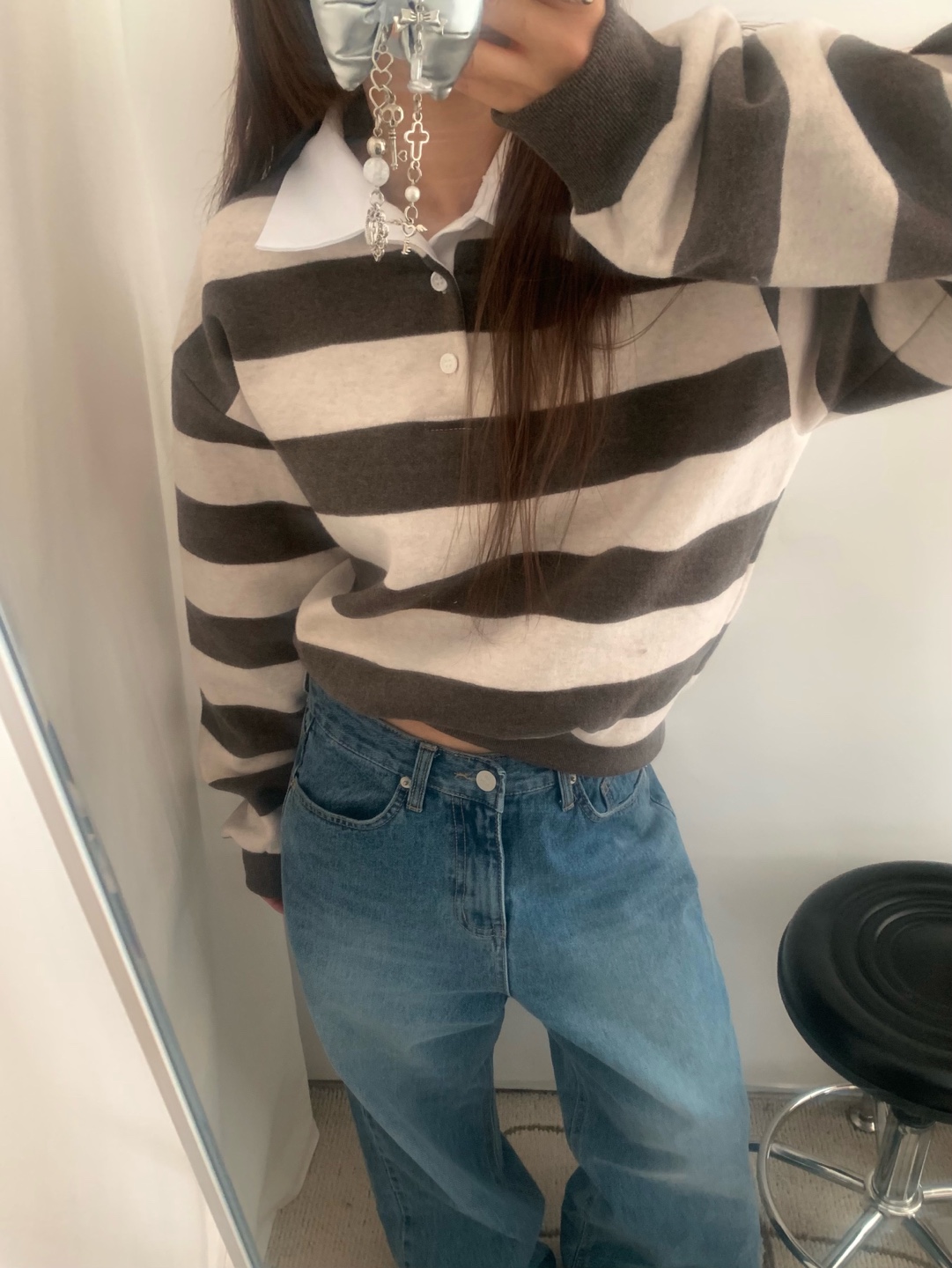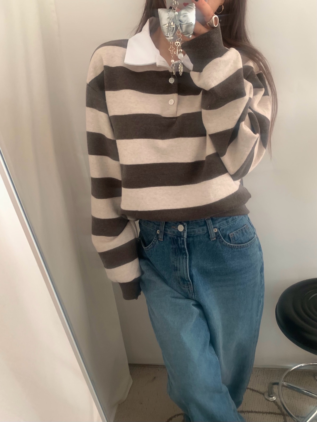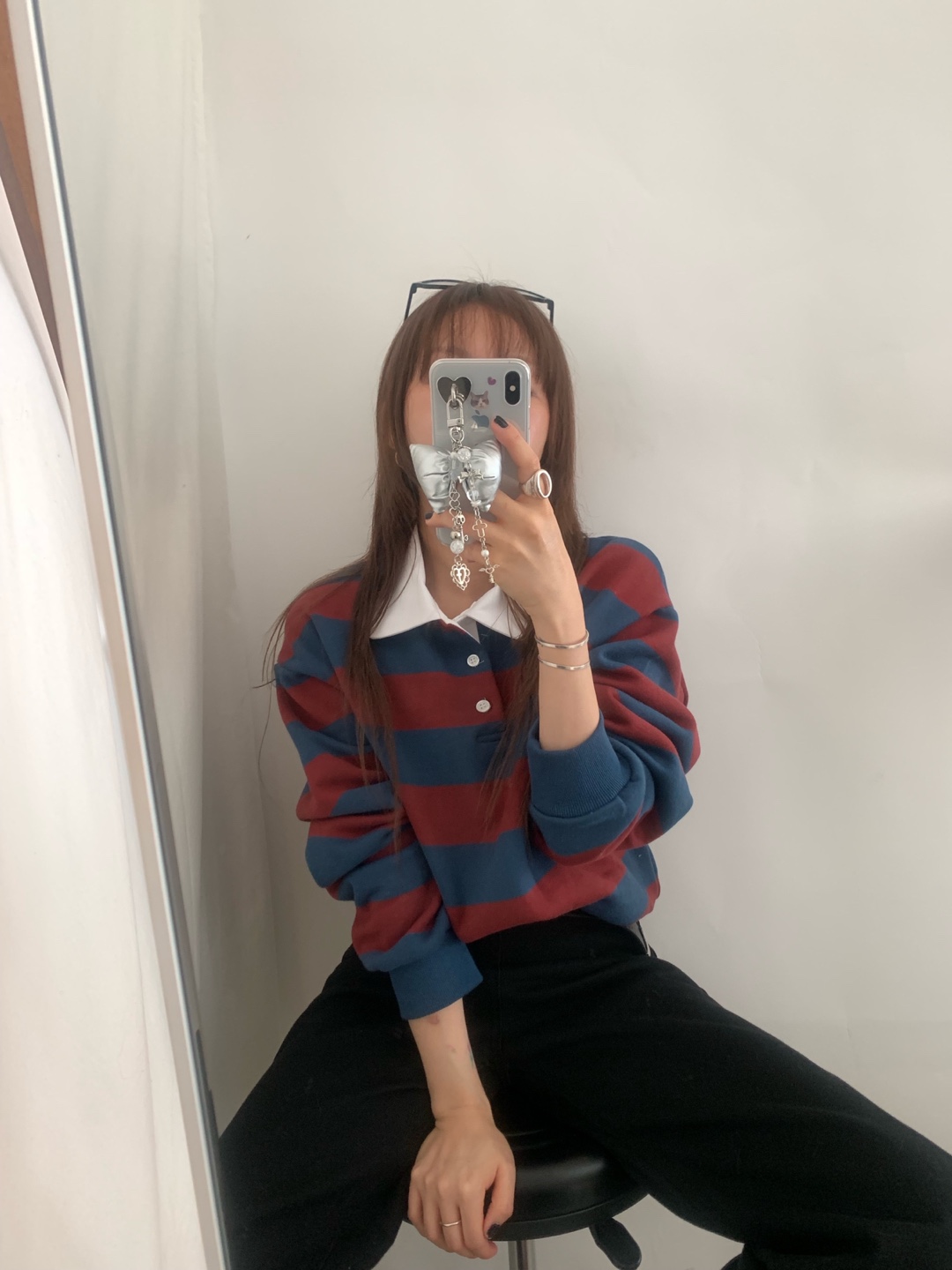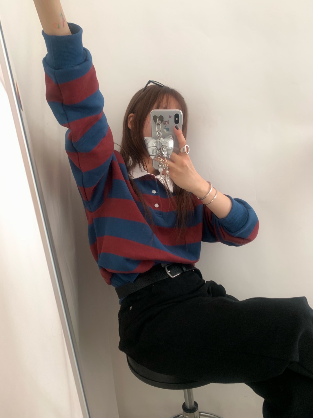 ボーダーカラーオープンカジュアルスウェットシャツ
