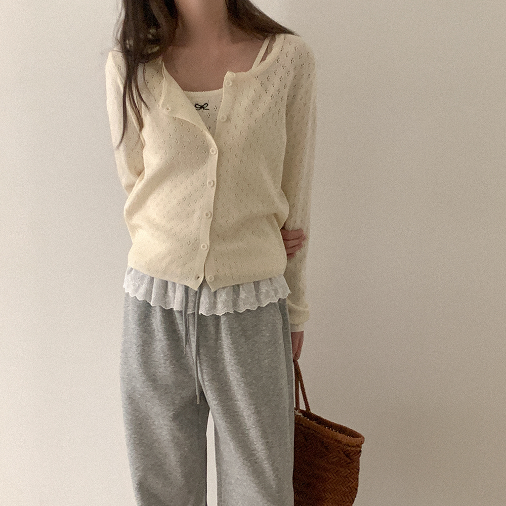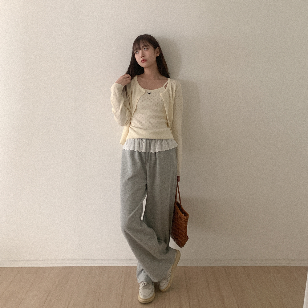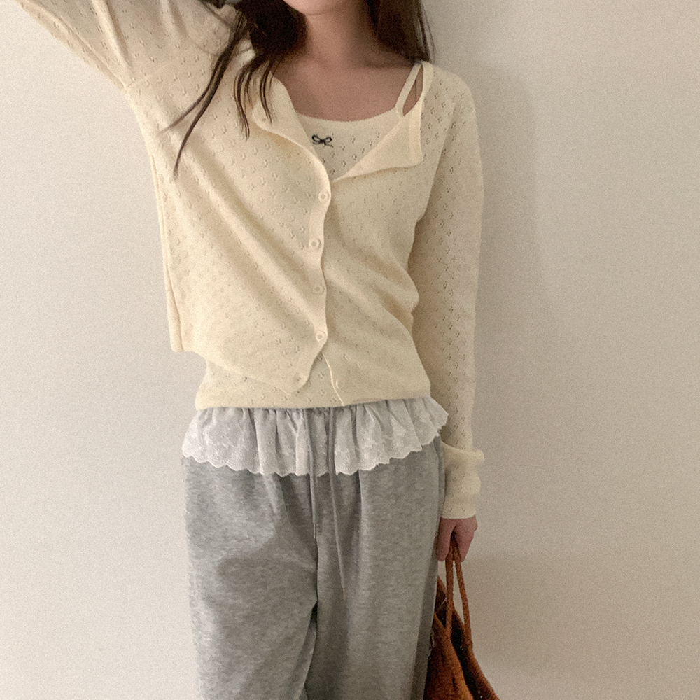リボンノースリーブカーディガンセット