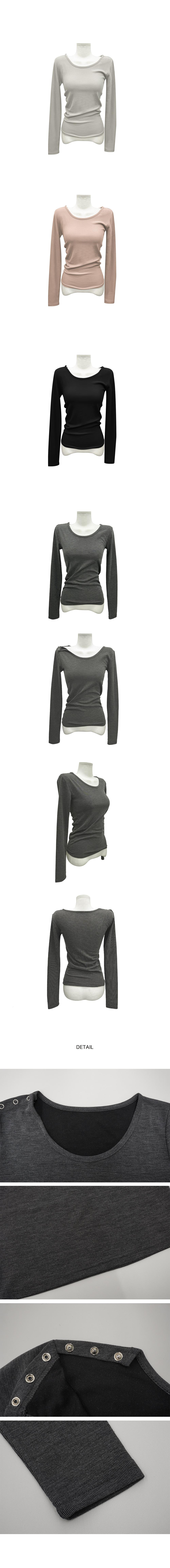 アシンメトリーオフボタン長袖Tシャツ-4color