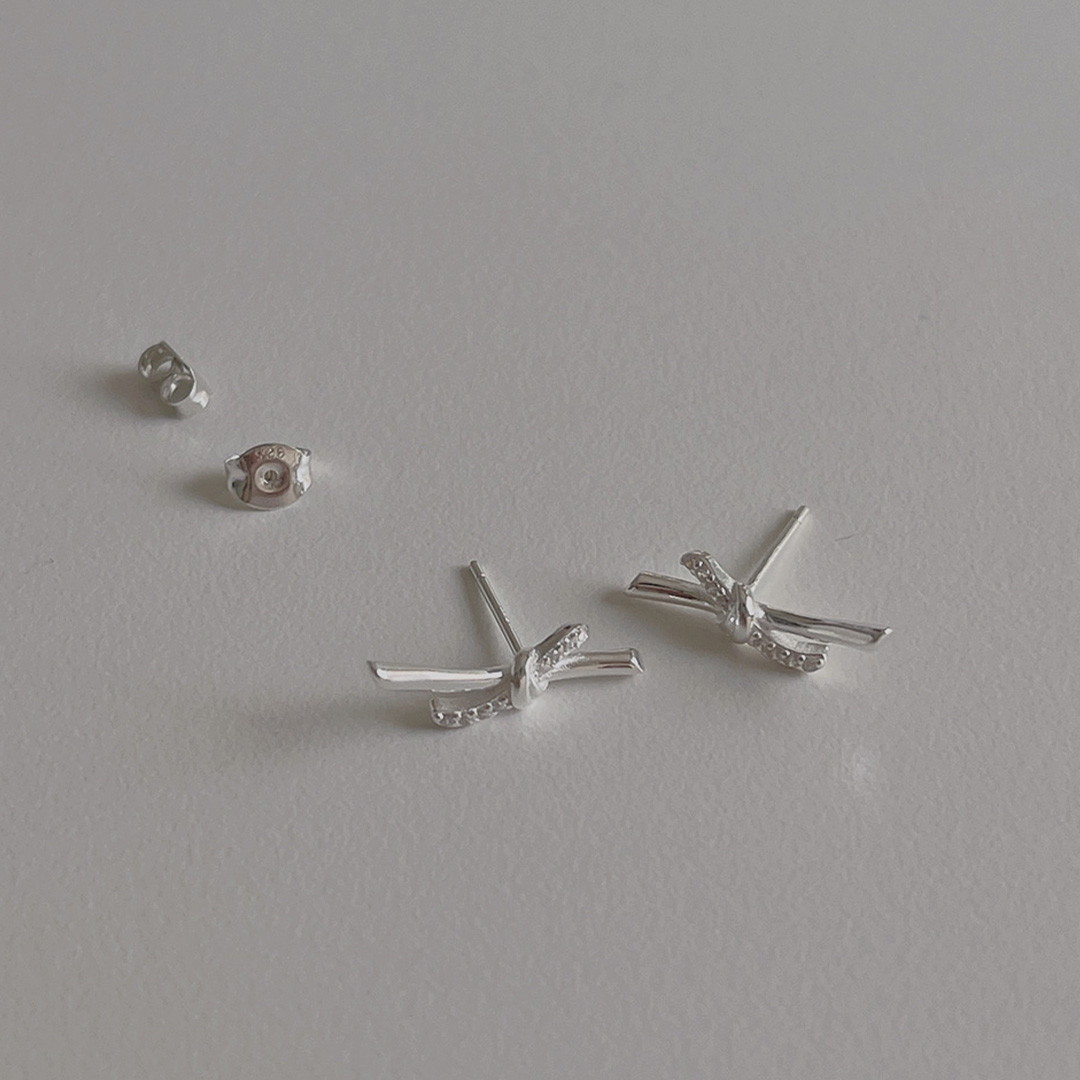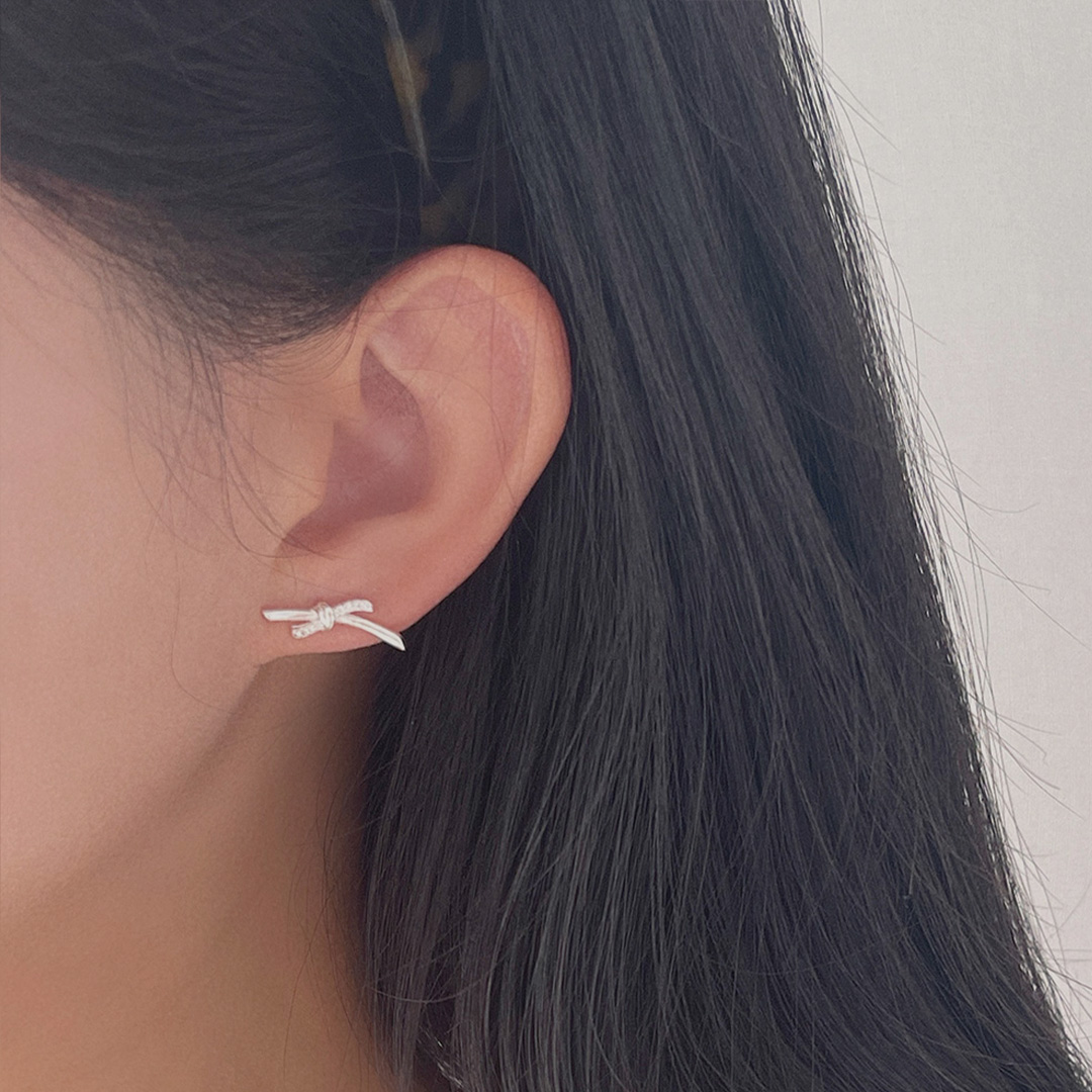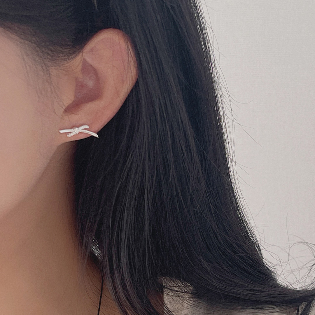[シルバー925]ウェーブ結び目リボンピアス