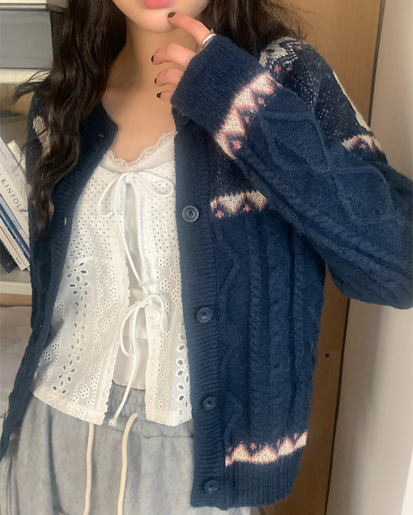 ヴィンテージツイストラウンドニットカーディガン