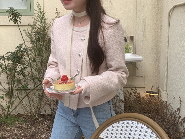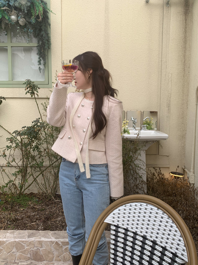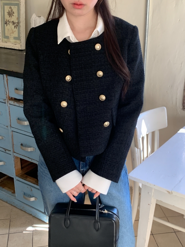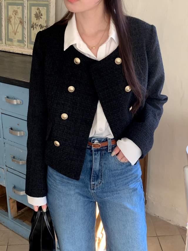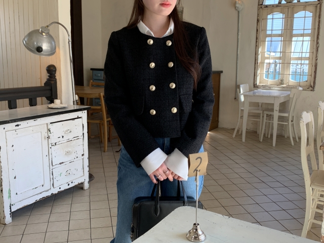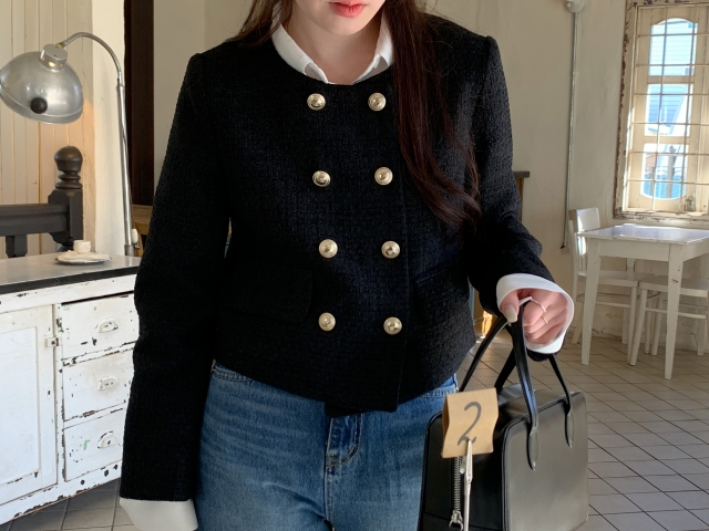 [original] ノーカラーツイードジャケット(2c)