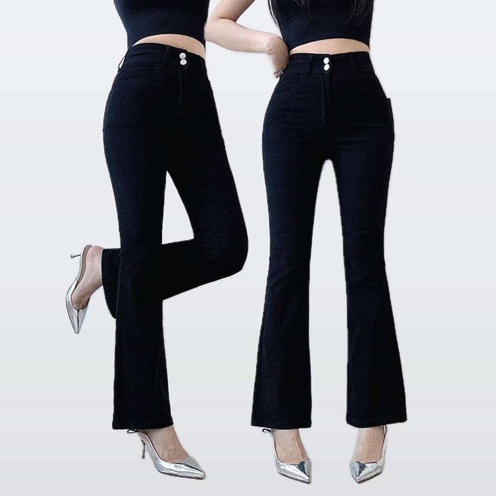 [short/basic/long][選べる着丈] ツーボタンスパンブーツカットゴムコットンパンツ