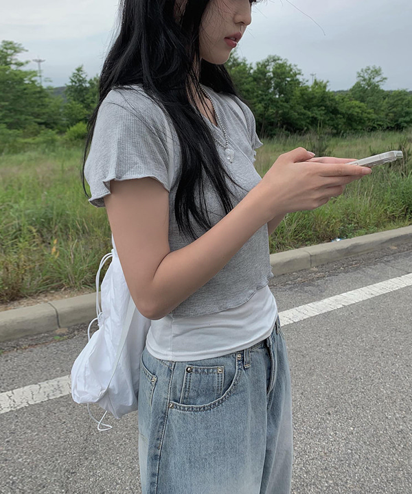 メロウフリルラップ風リボンクロップドTシャツ (3color)