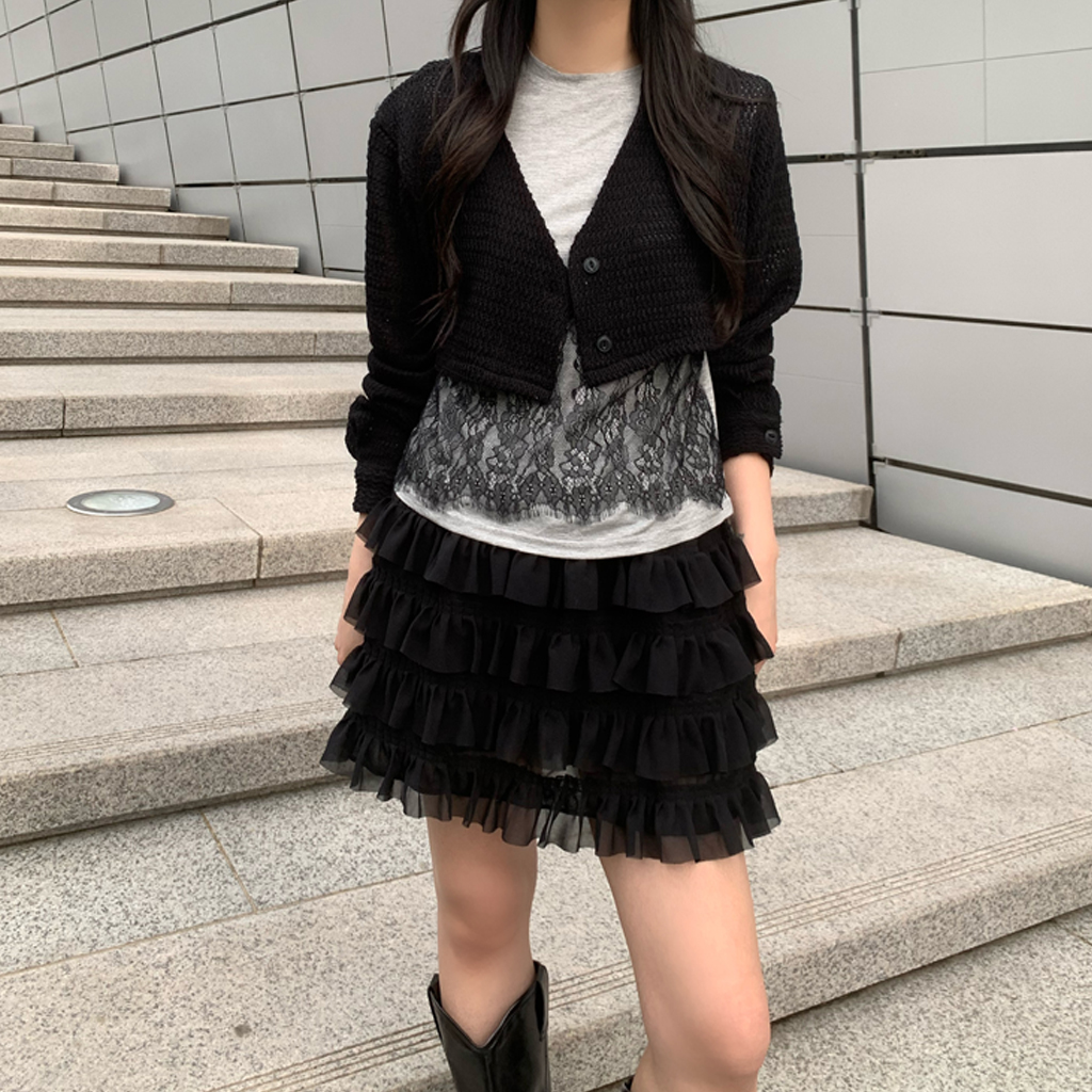 [パンツ型裏地付き] シフォンティアードミニスカート