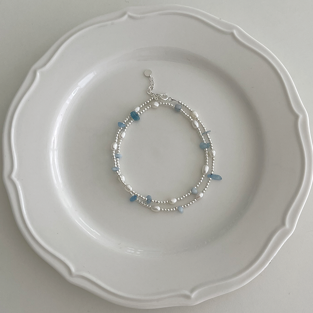 [シルバー925]アクアマリン淡水パールボールネックレス