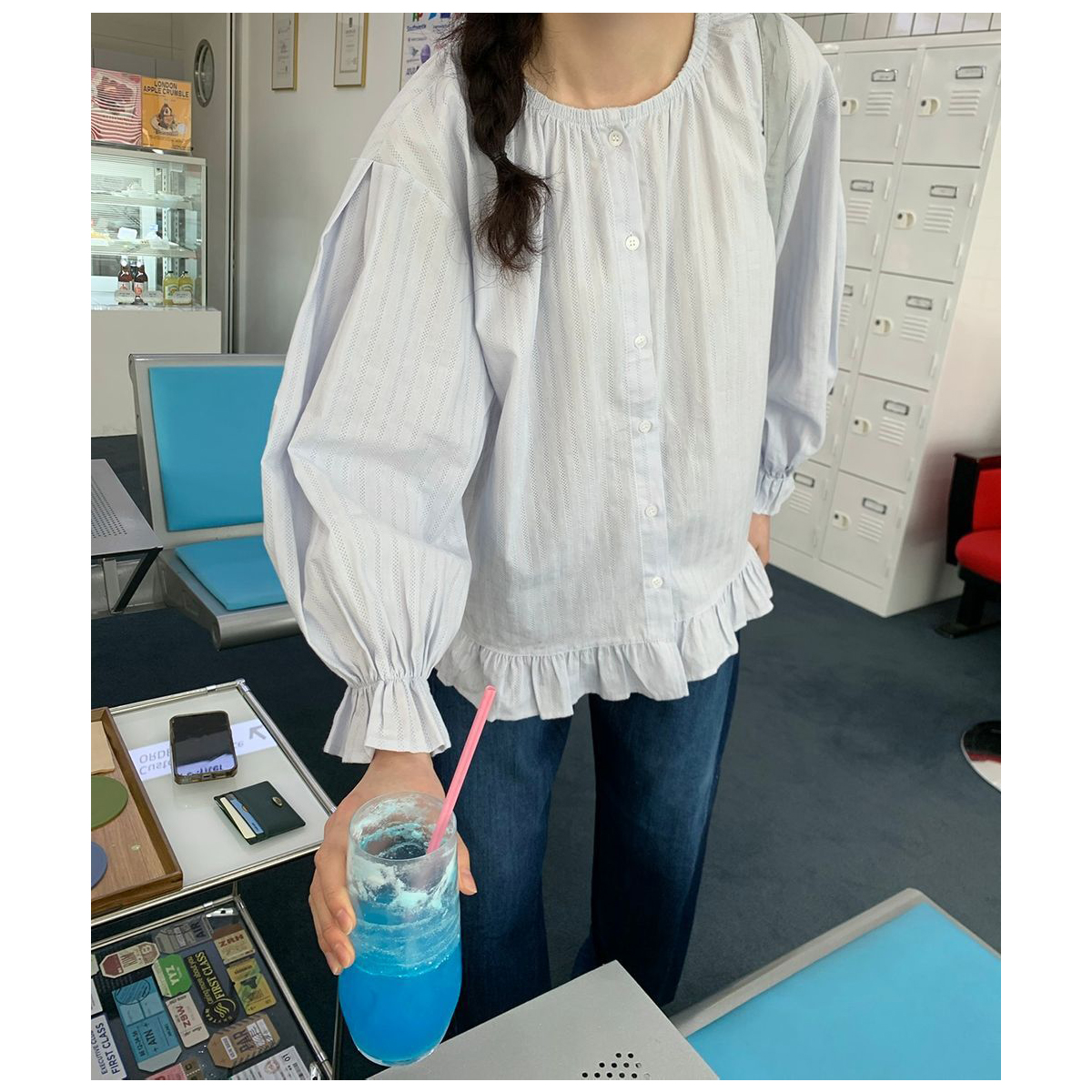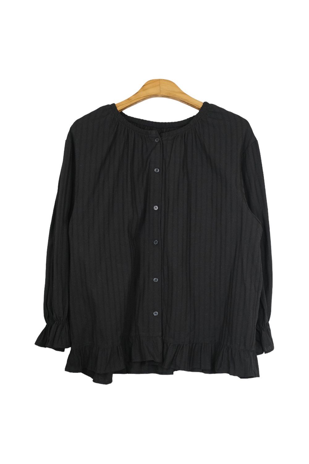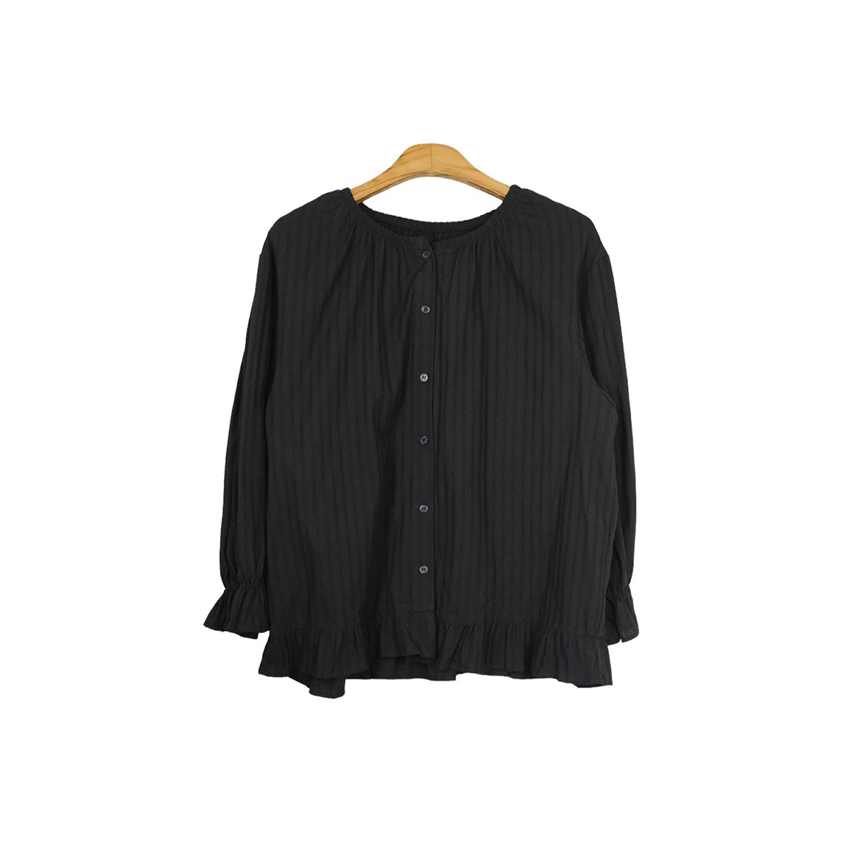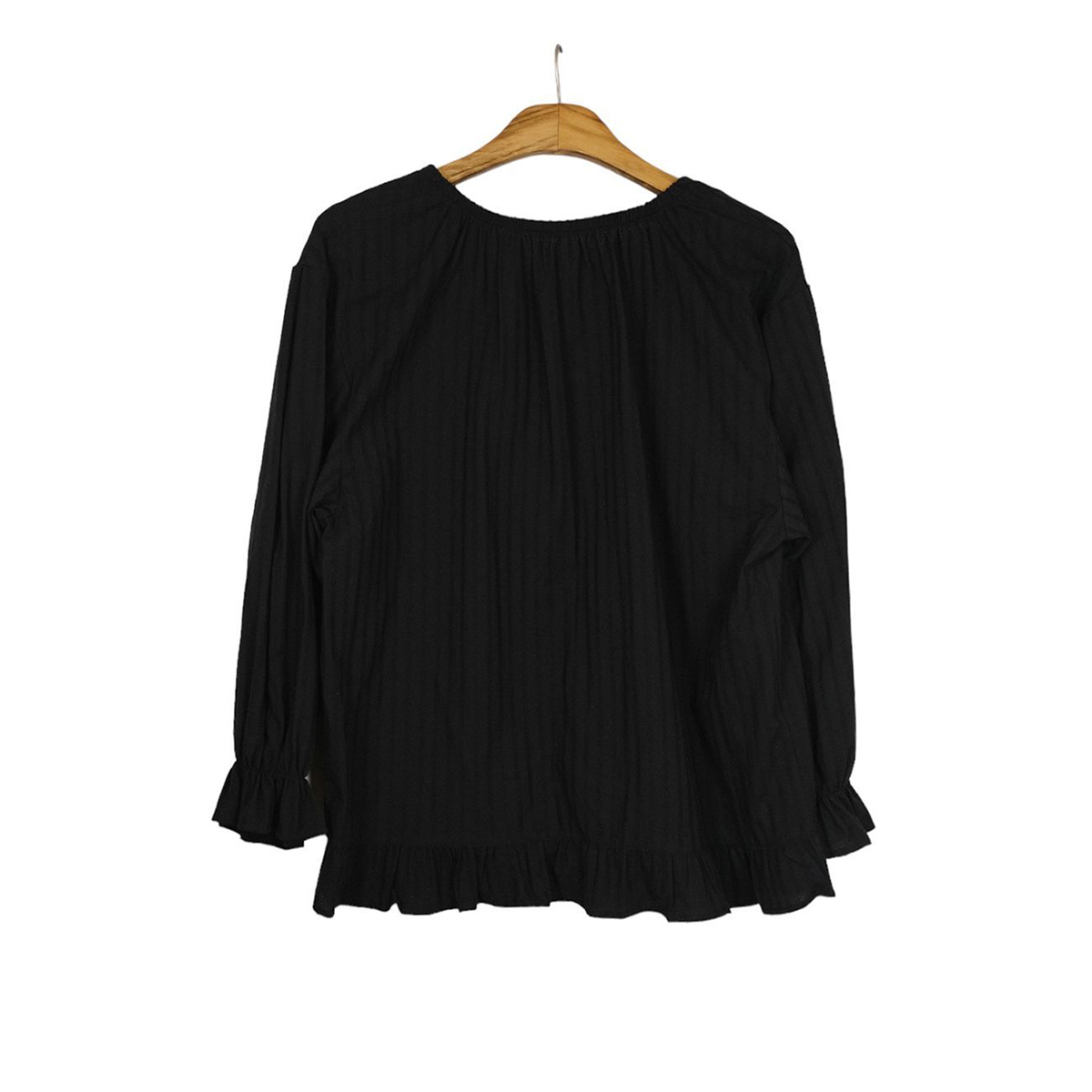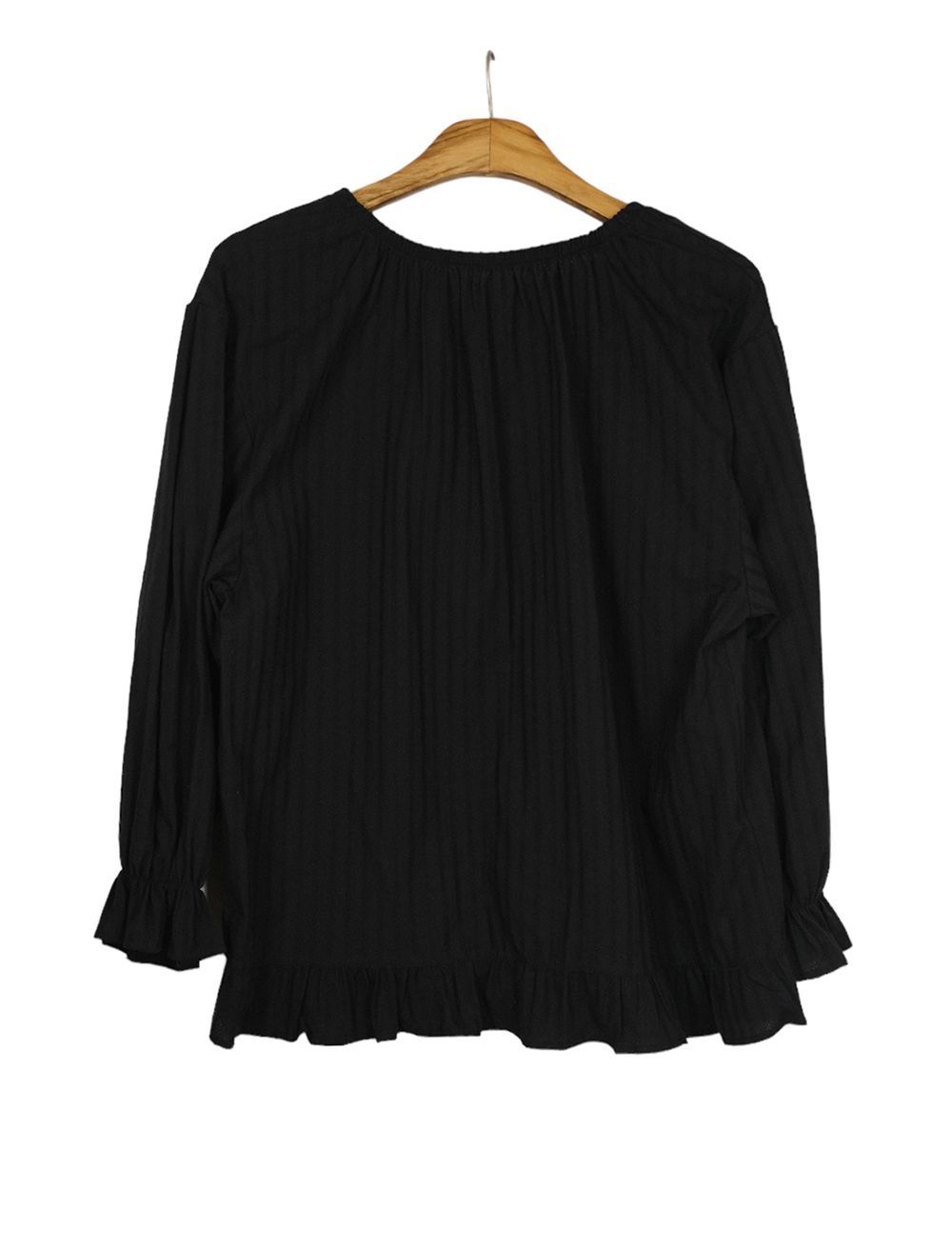 ラウンドネックコットンパフ袖フリルブラウス