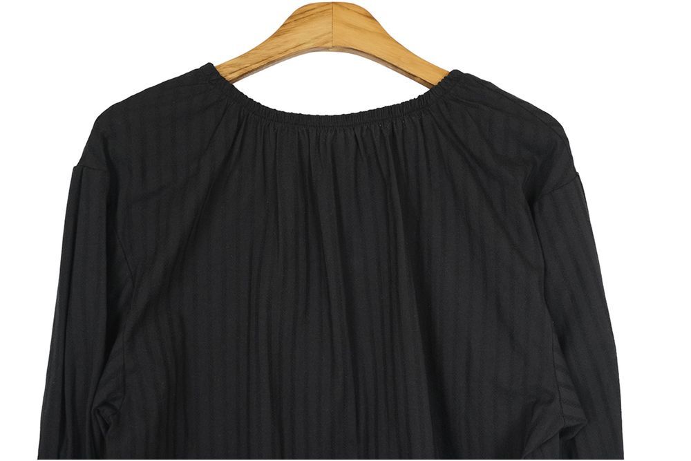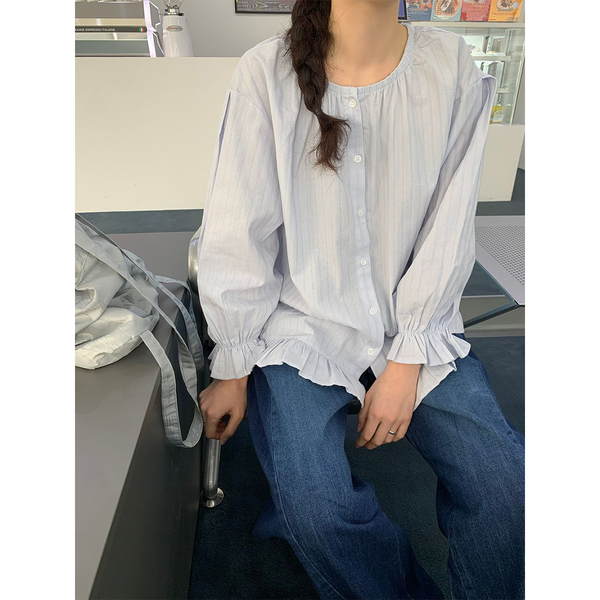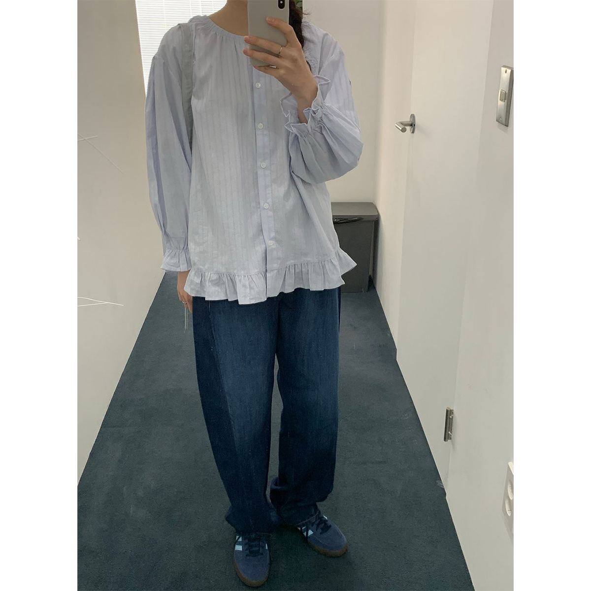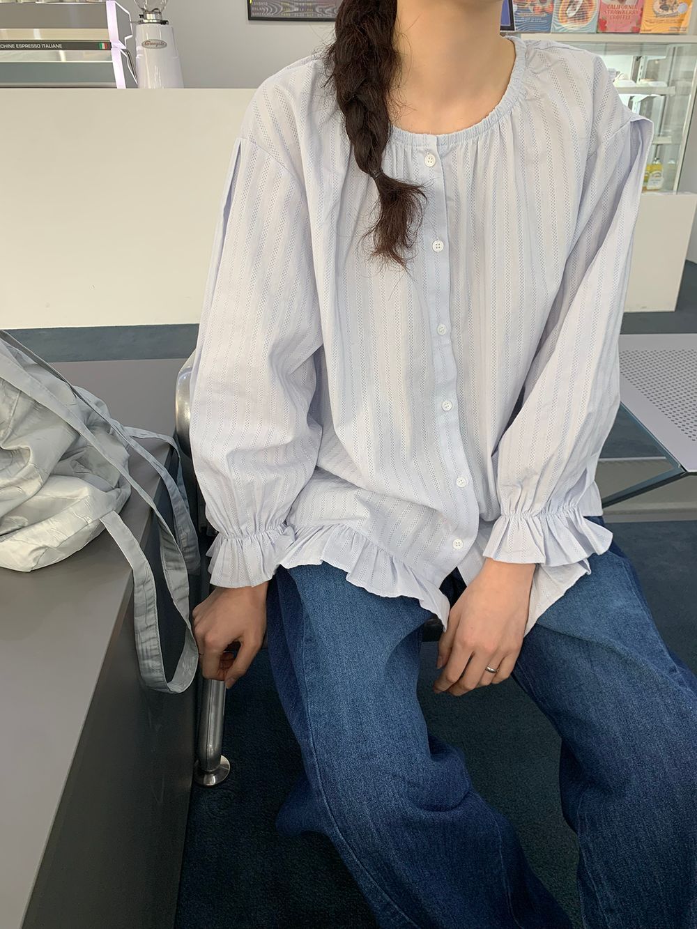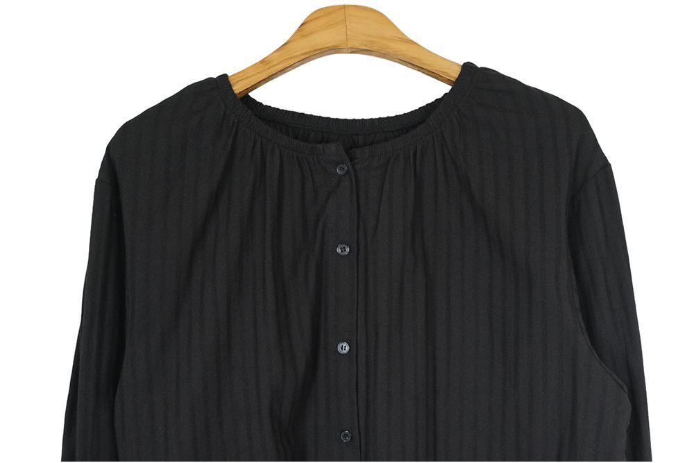 ラウンドネックコットンパフ袖フリルブラウス
