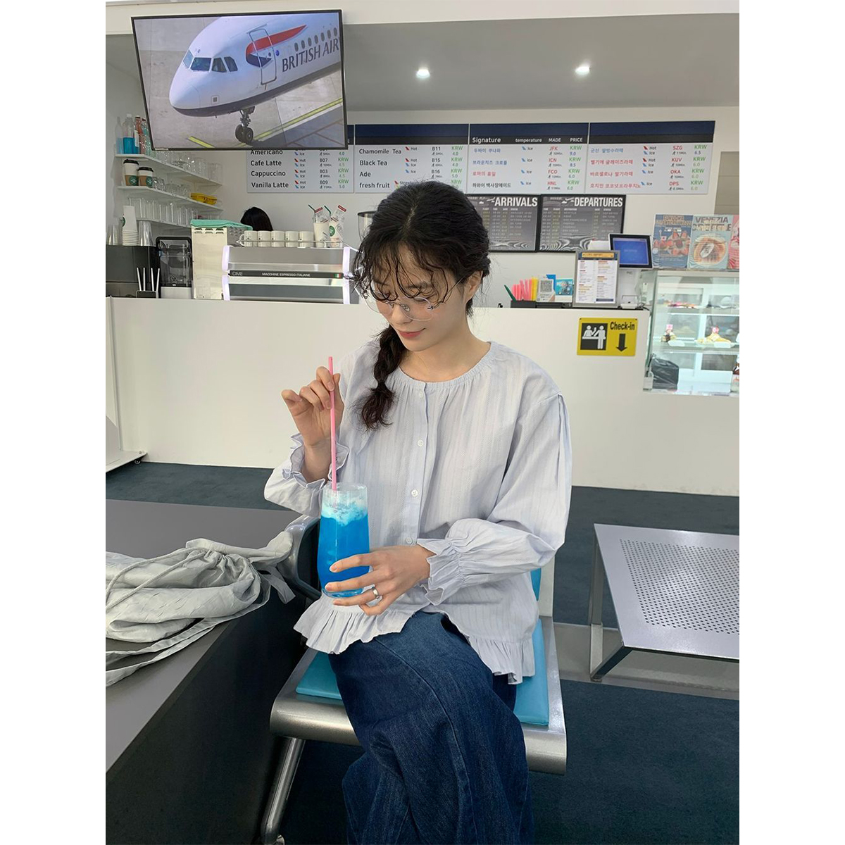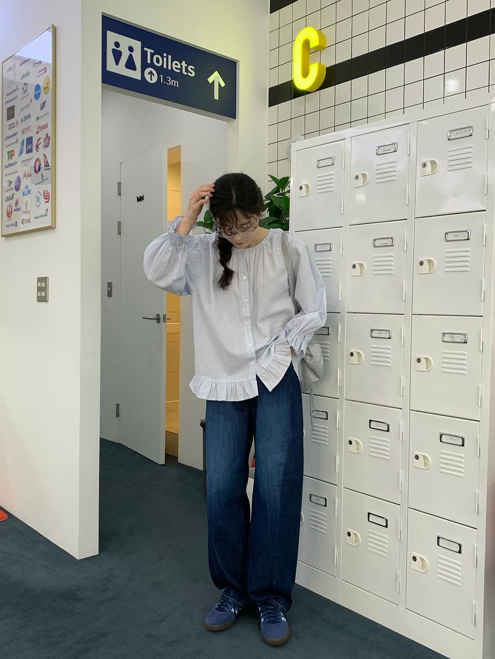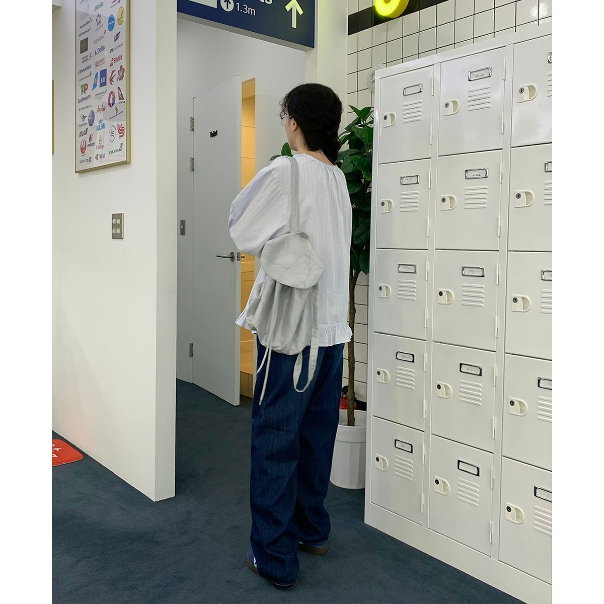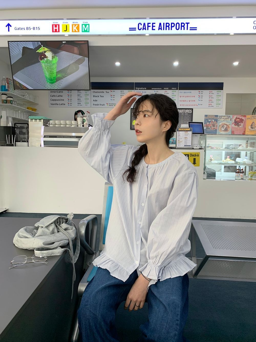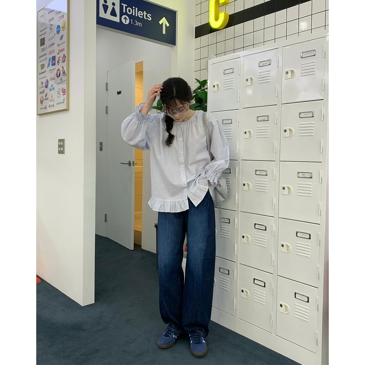 ラウンドネックコットンパフ袖フリルブラウス
