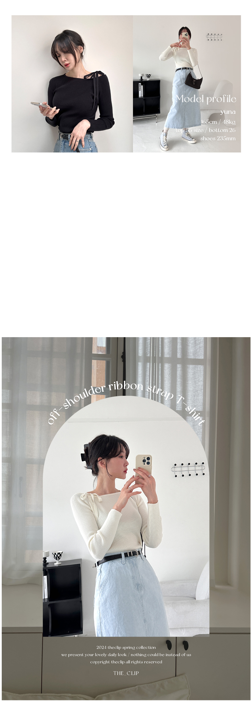 アシンメトリーリボンオフショルTシャツ