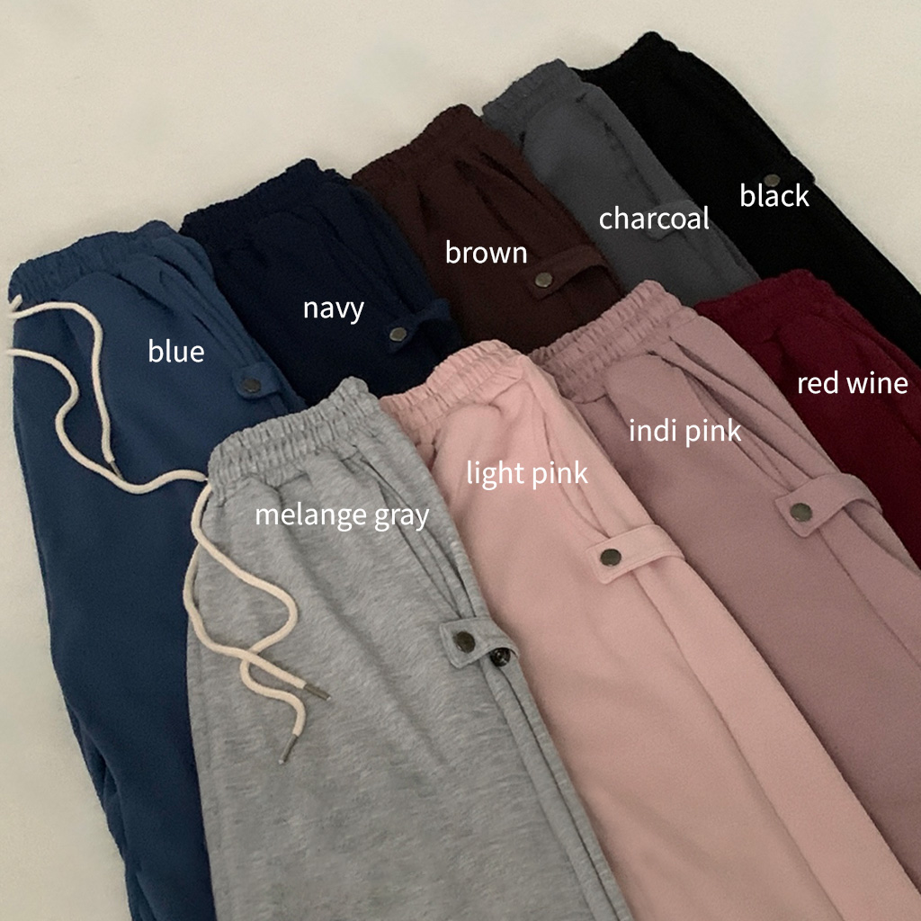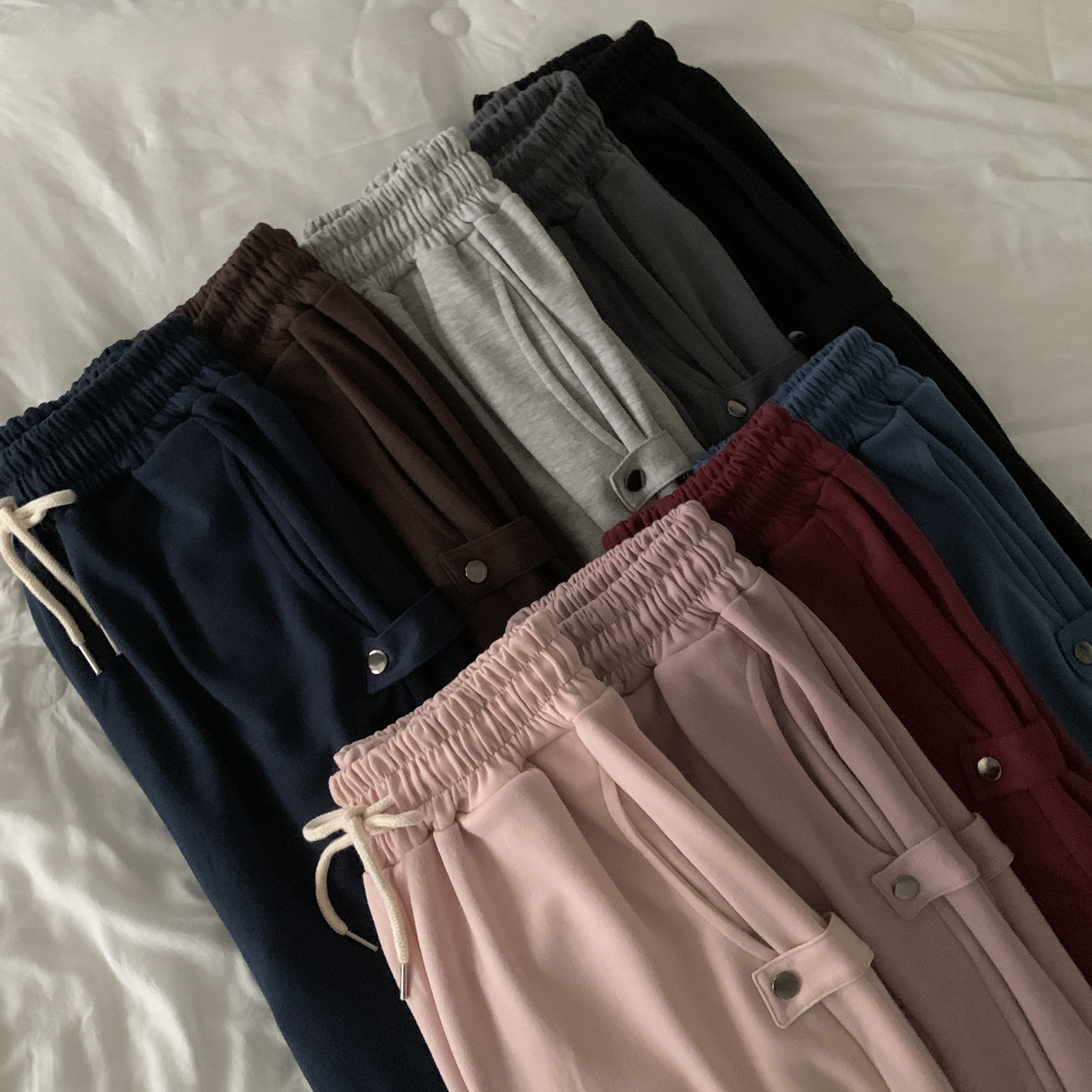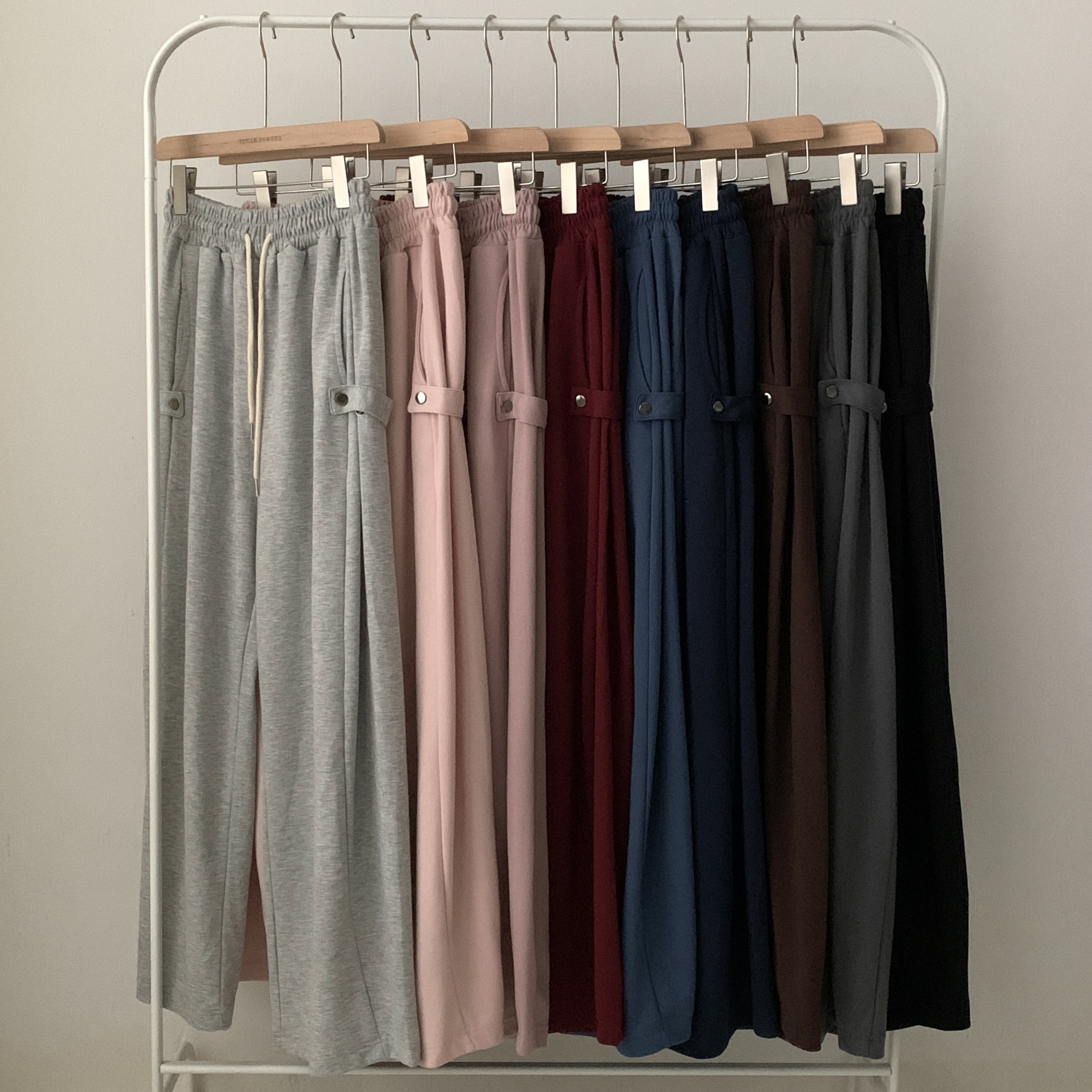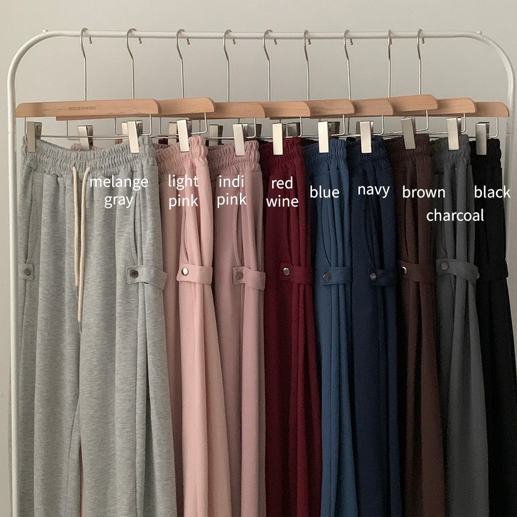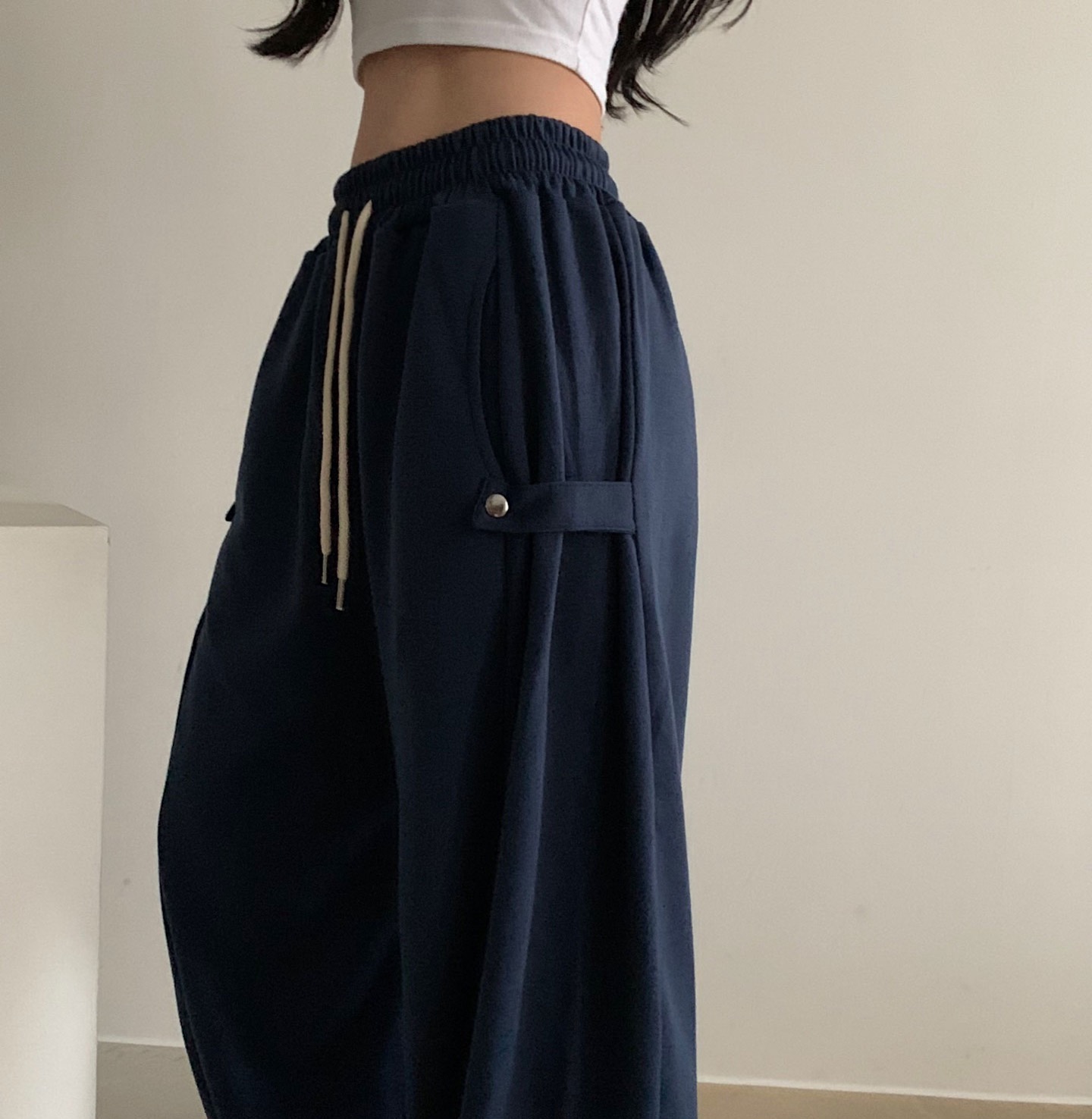 (9color)ボタンロングワイドトレーニングゴムパンツ