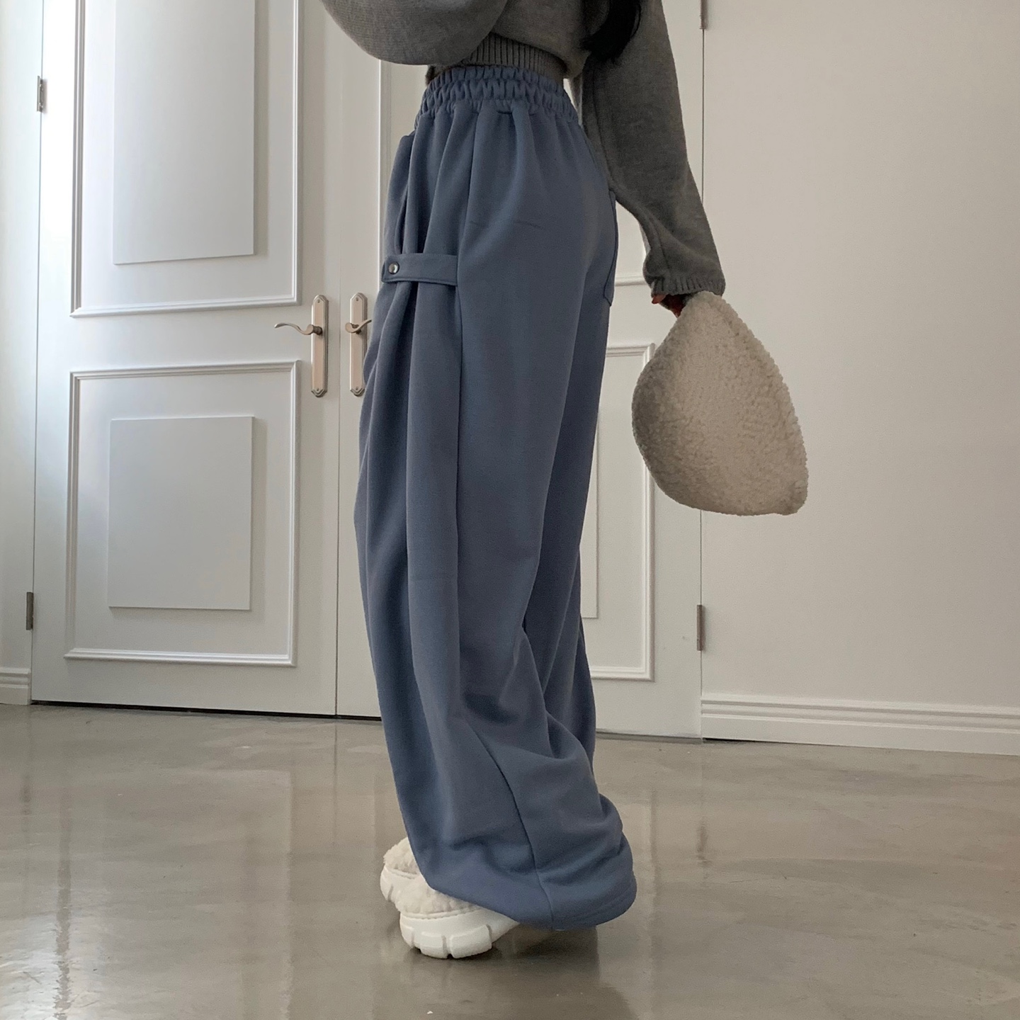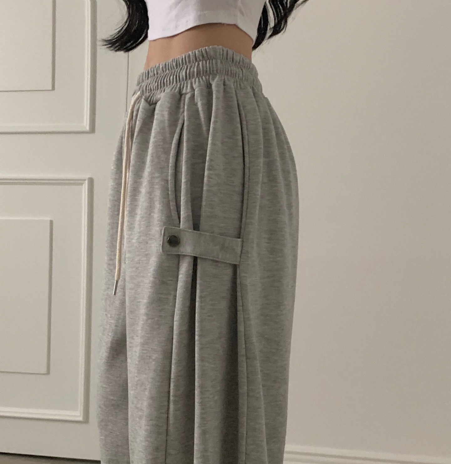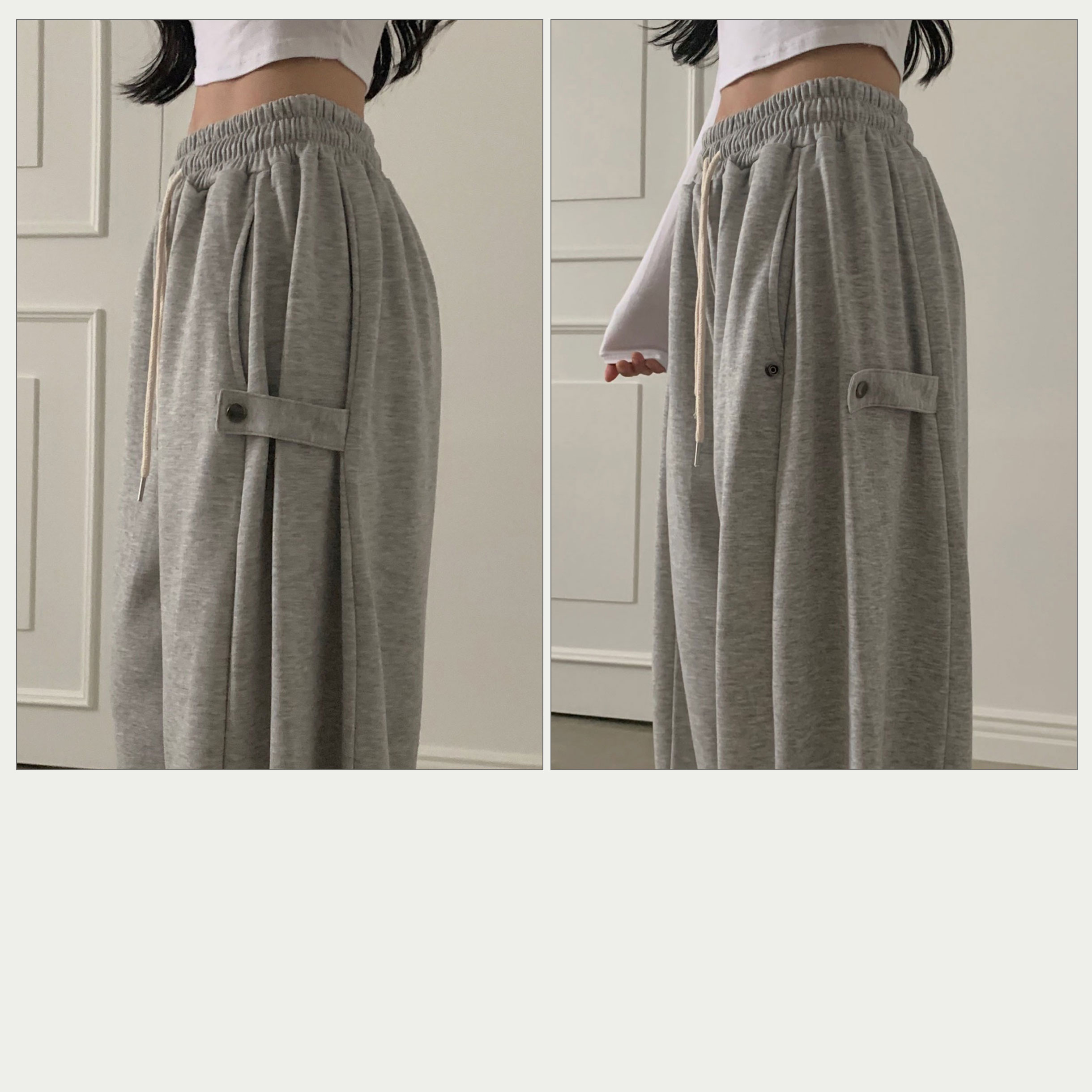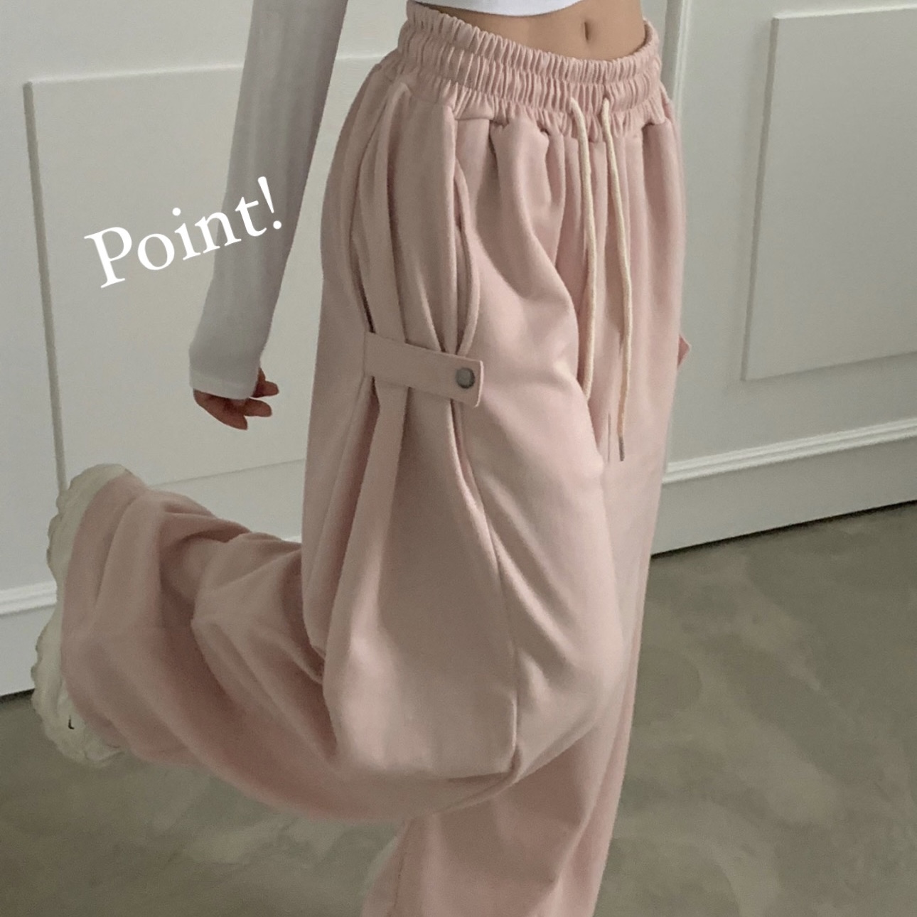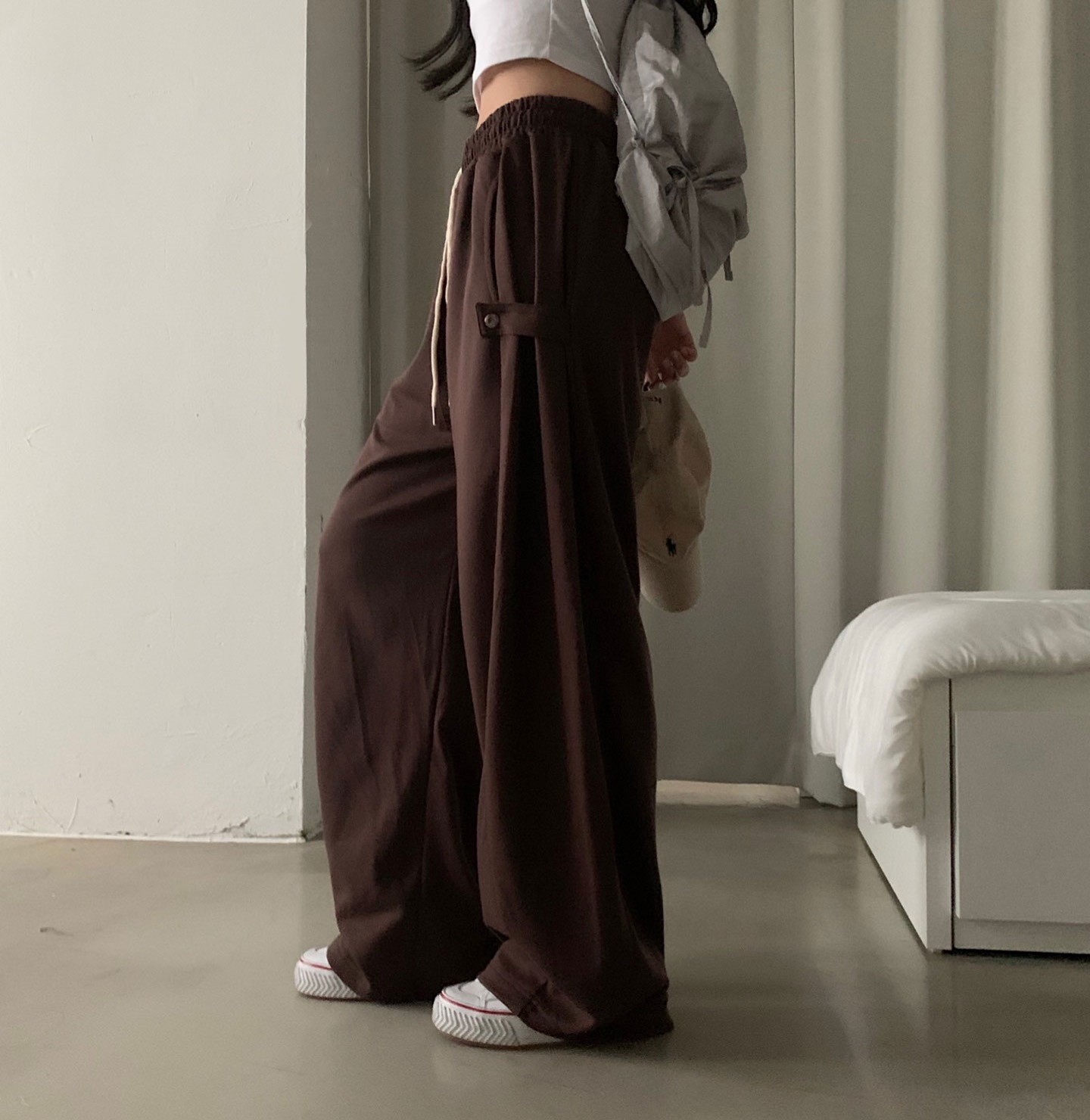 (9color)ボタンロングワイドトレーニングゴムパンツ