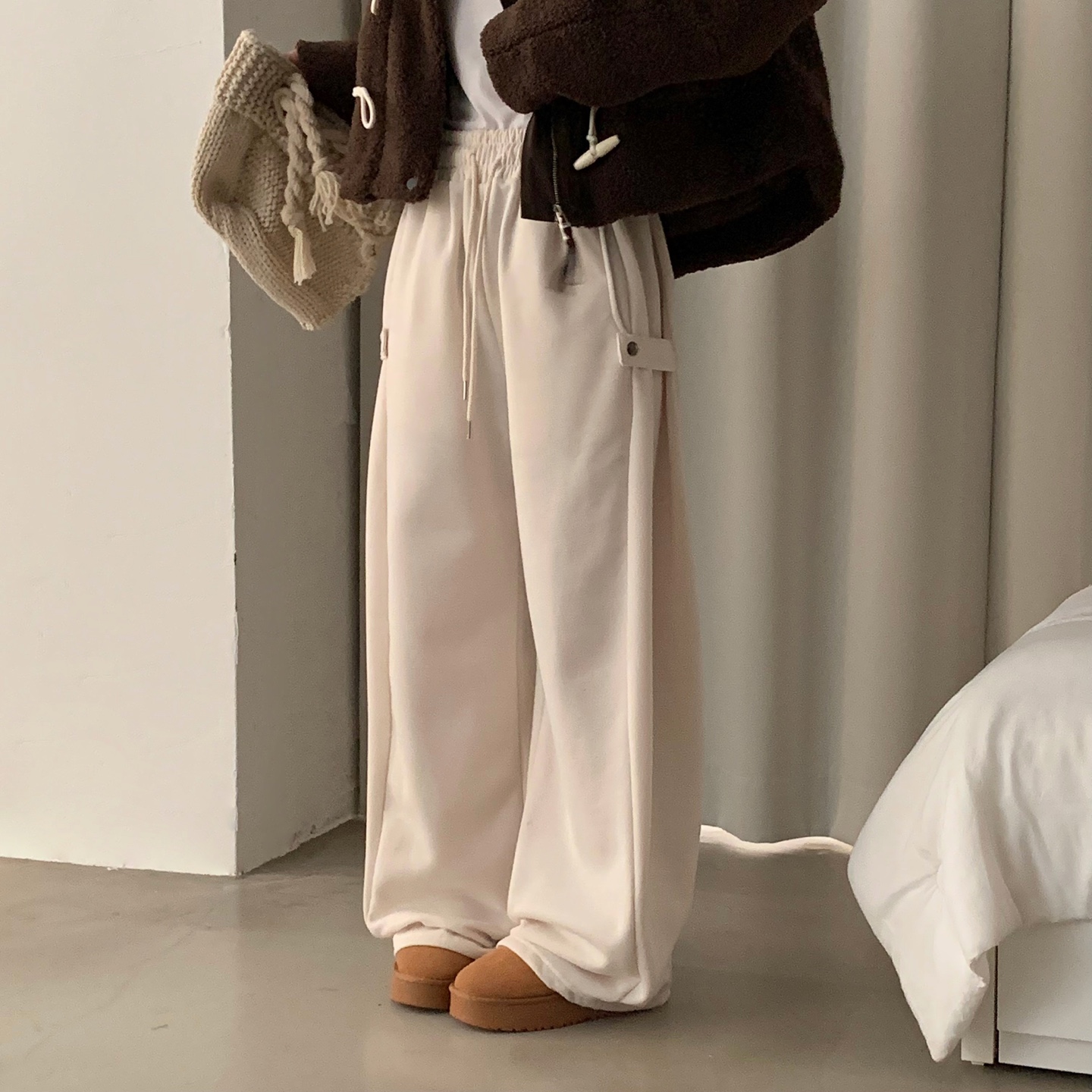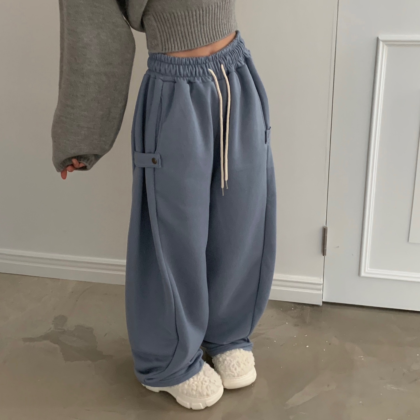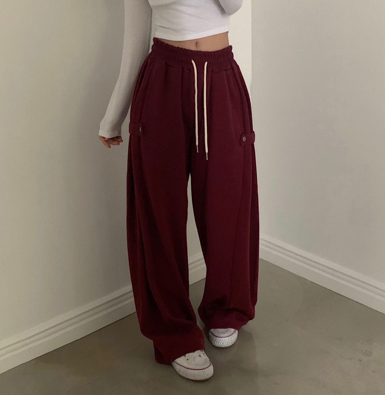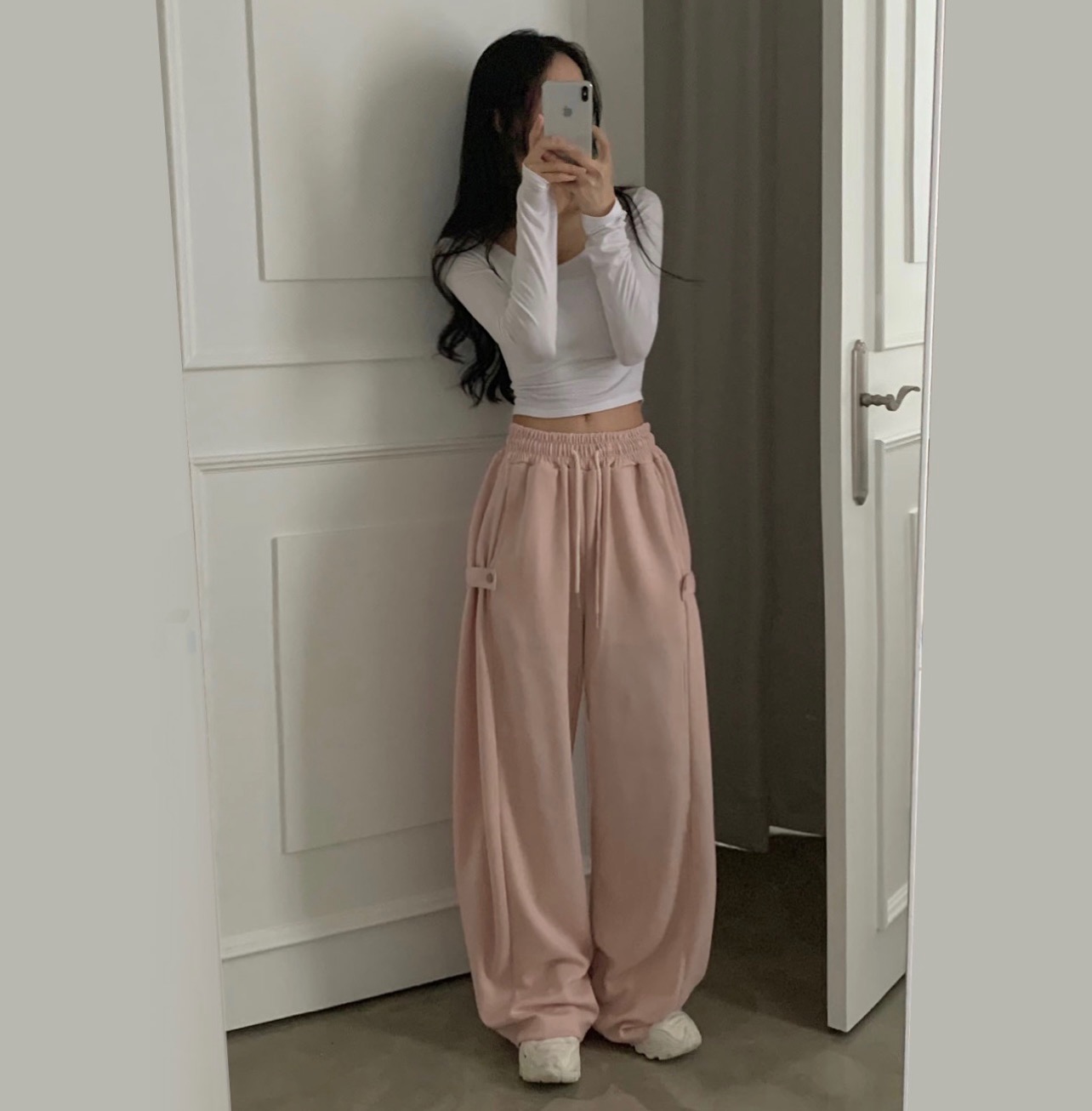 (9color)ボタンロングワイドトレーニングゴムパンツ